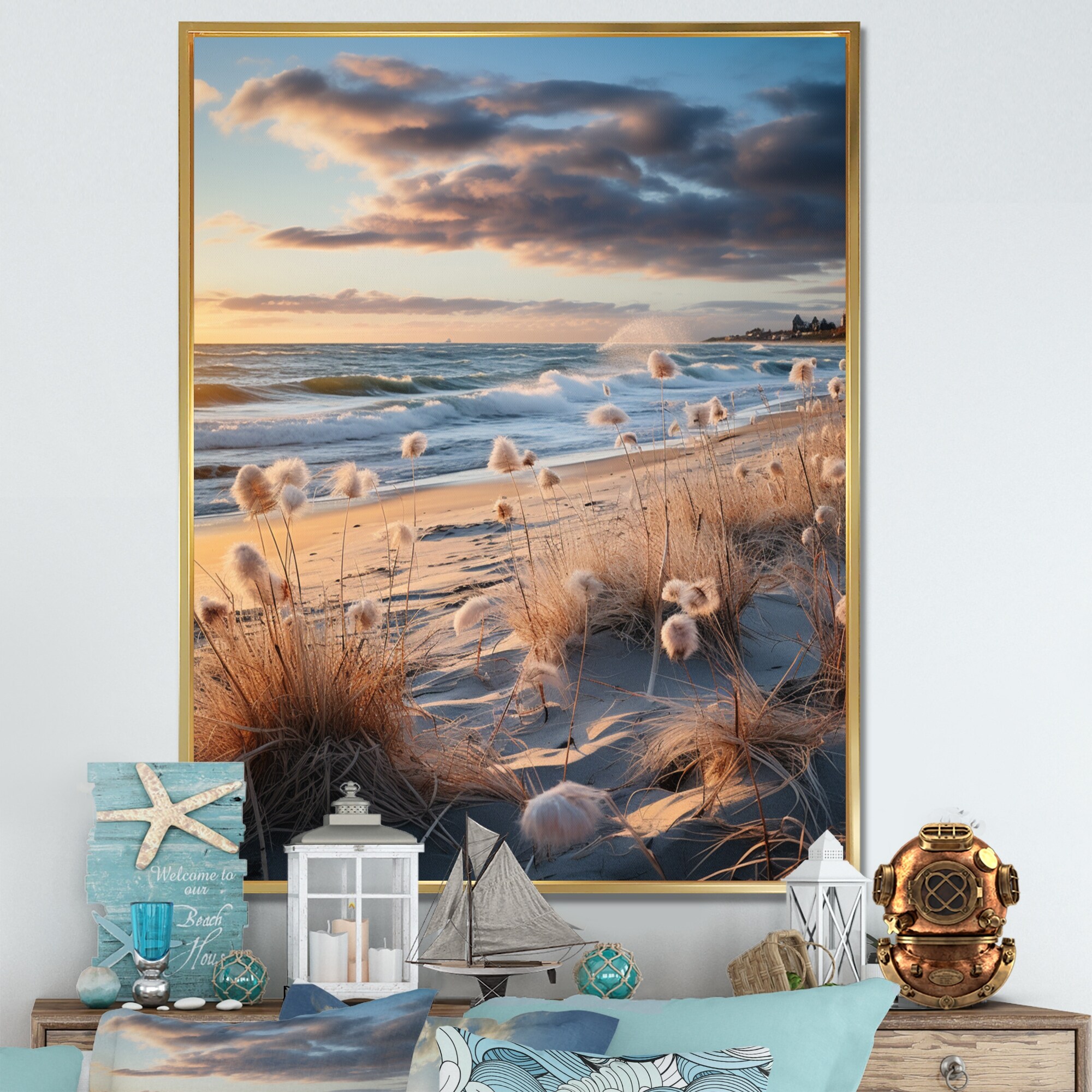 Designart "Coastal Minimalism Photo VIII" Beach & Ocean Framed Wall Art Living Room