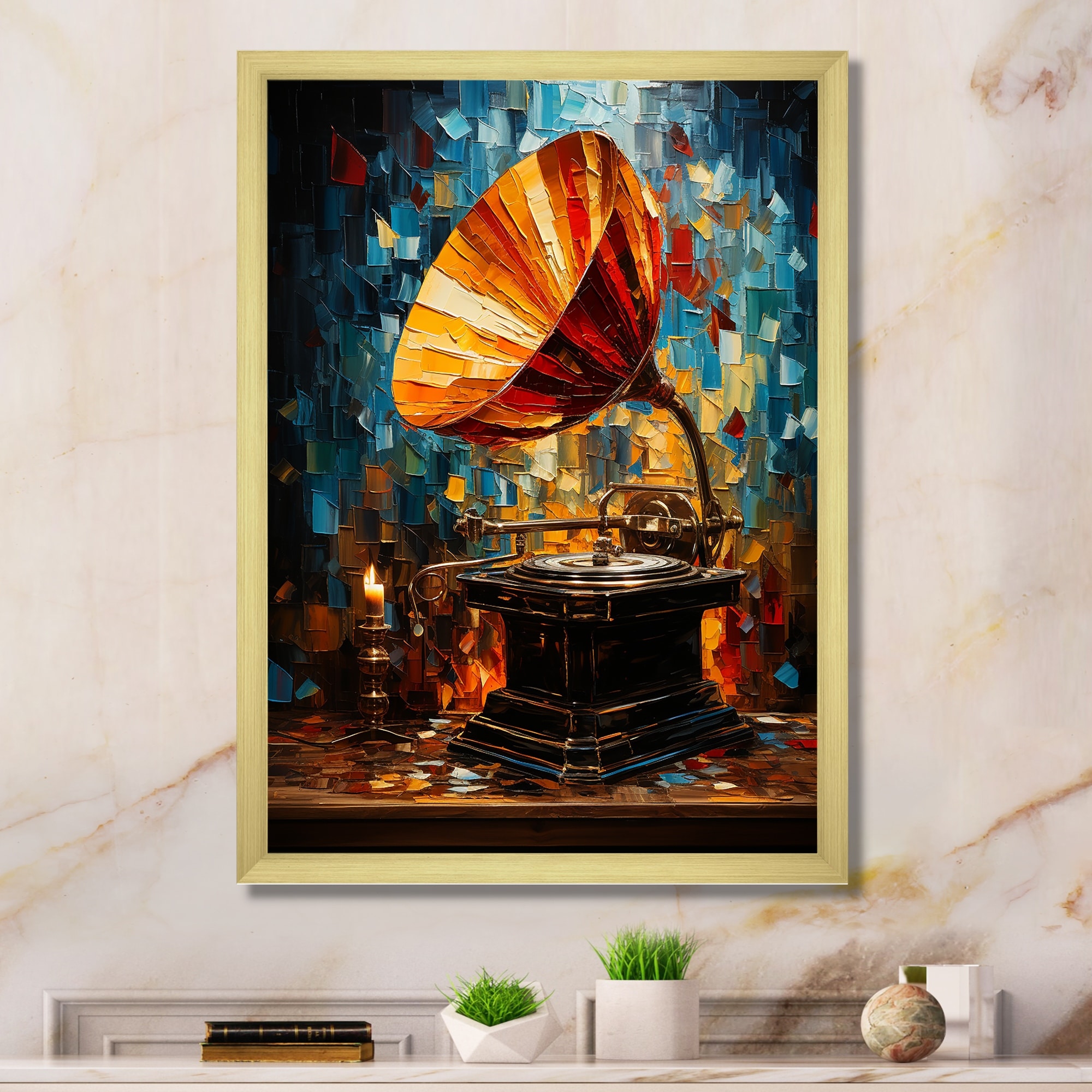 Designart "Phonograph Mosaic" Phonographs Framed Wall Art Living Room