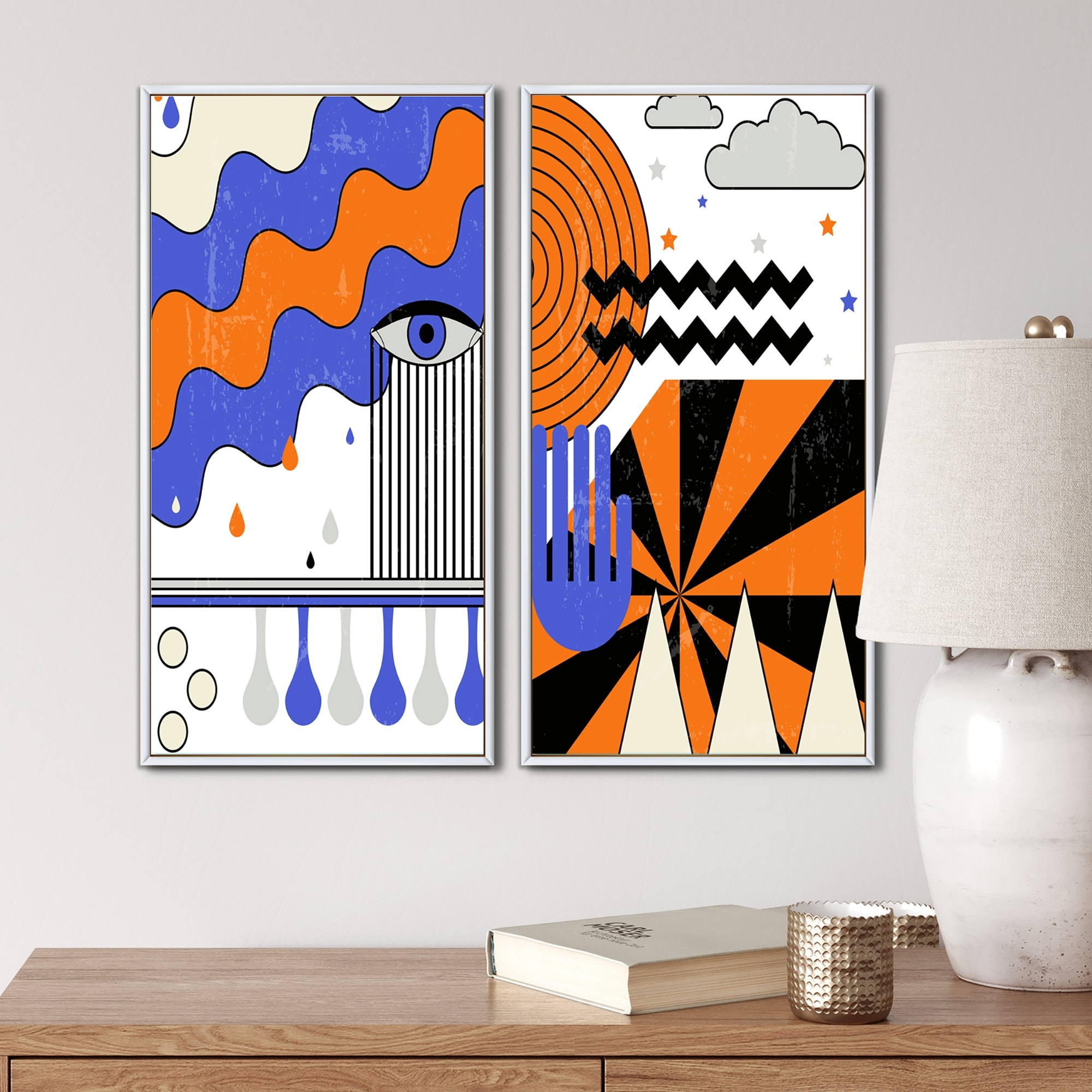 Designart "Trendy Abstract Retro Geometrics I" Geometric Framed Art Set of 2 Pieces