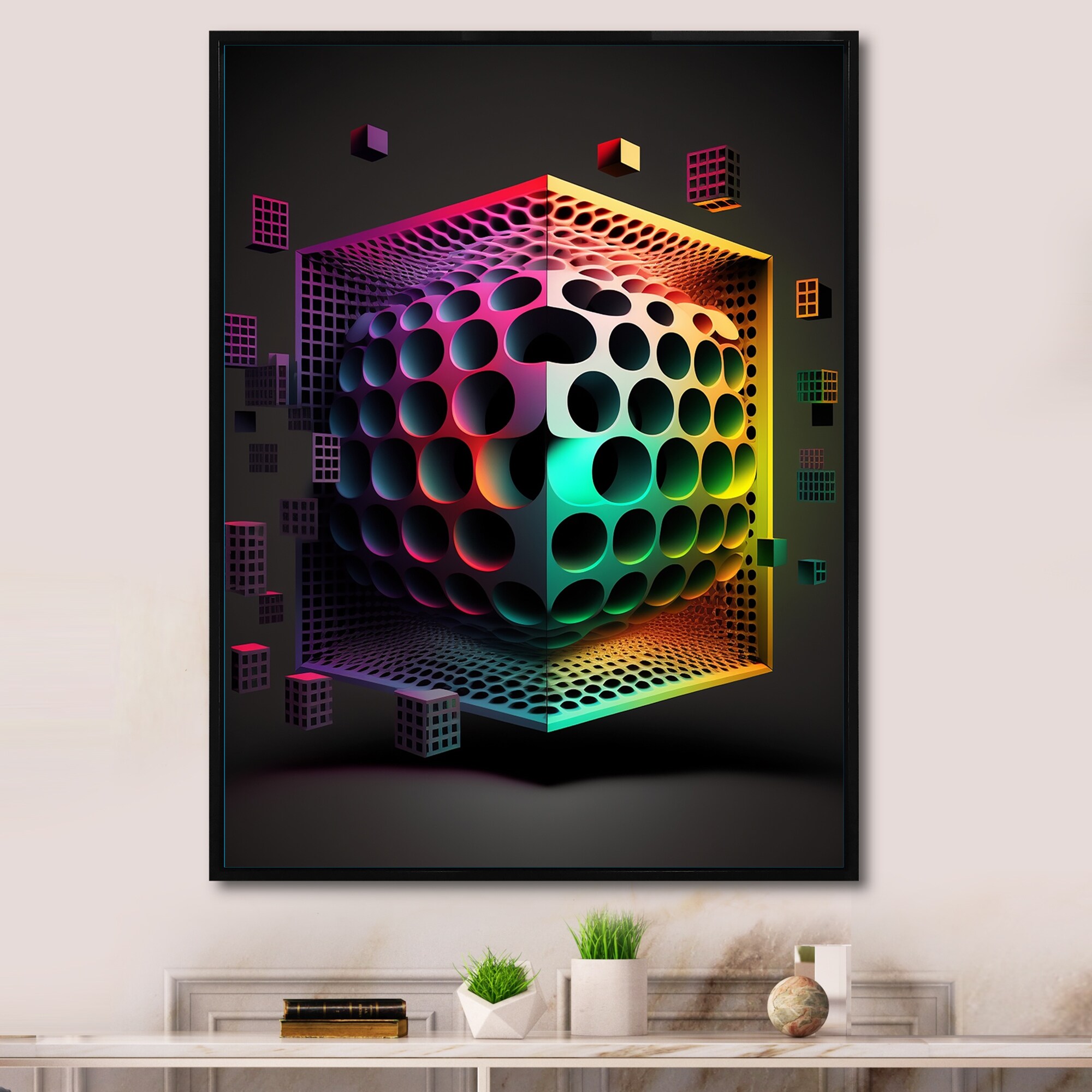 Designart "Multidimensional Luminogram I" Modern Geometric Framed Canvas Wall Art Print
