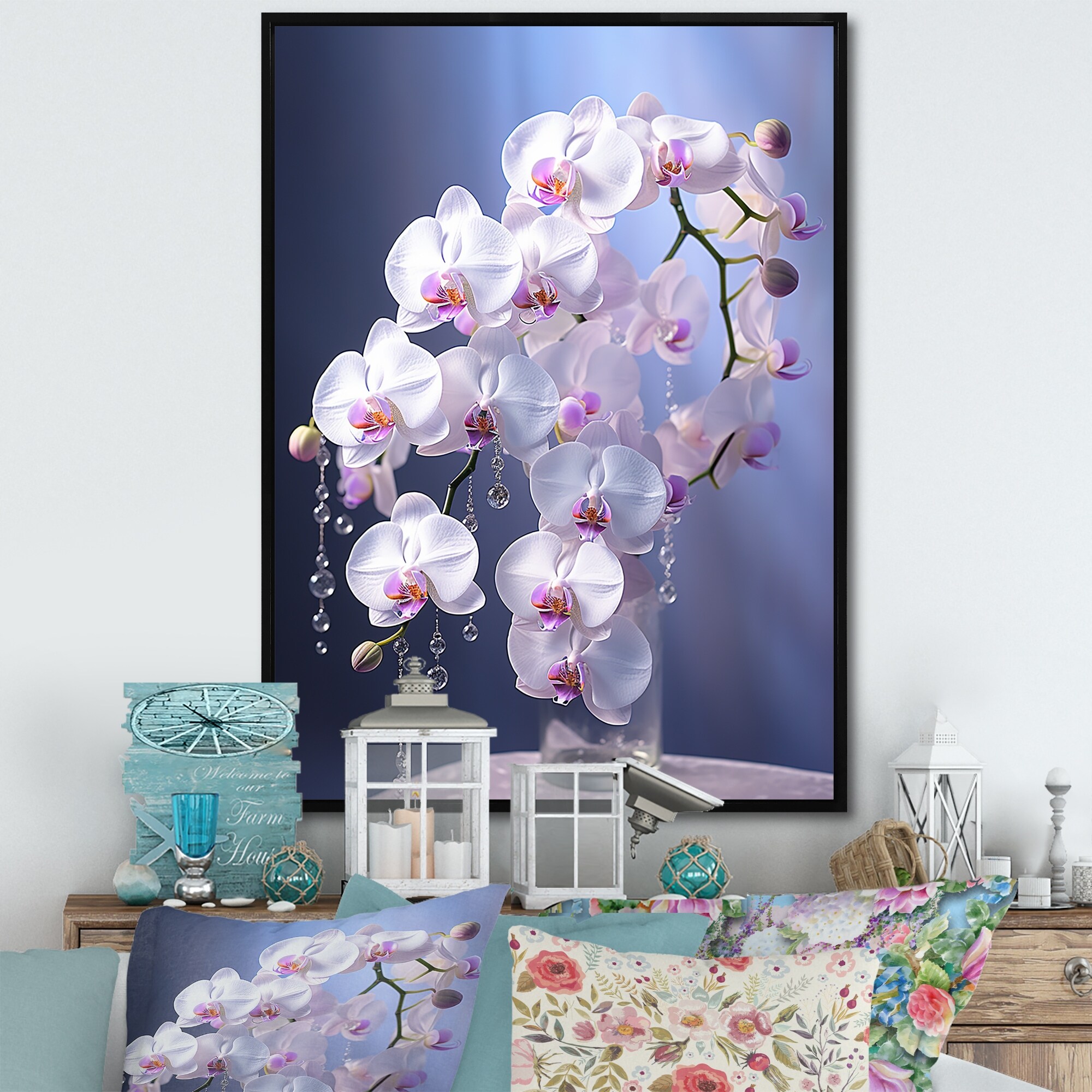 Designart "Purple Orchids Elegance II" Orchids Framed Canvas Wall Art