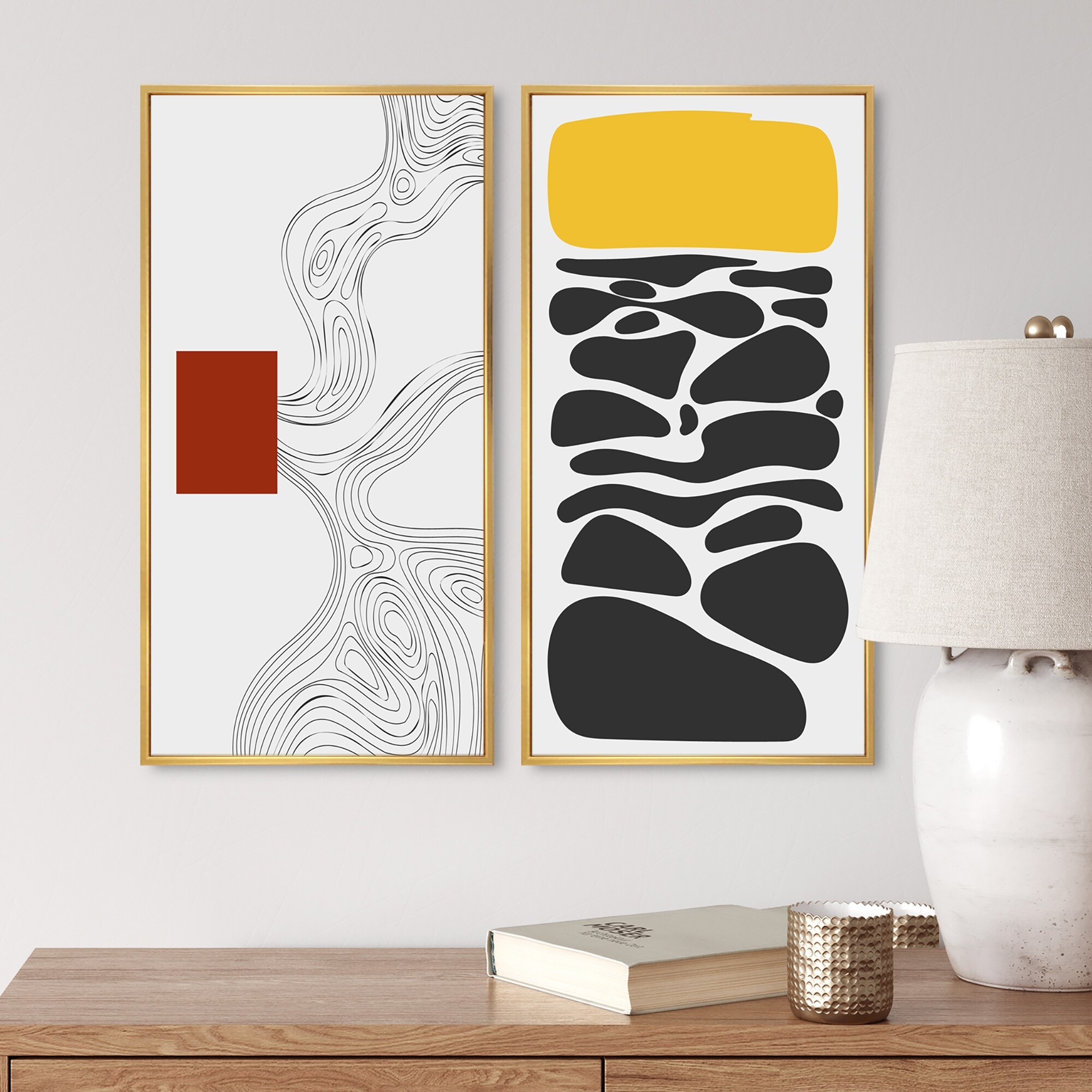 Designart "Graphic Vintage Minimal Geometrics I" Geometric Framed Art Set of 2 Pieces