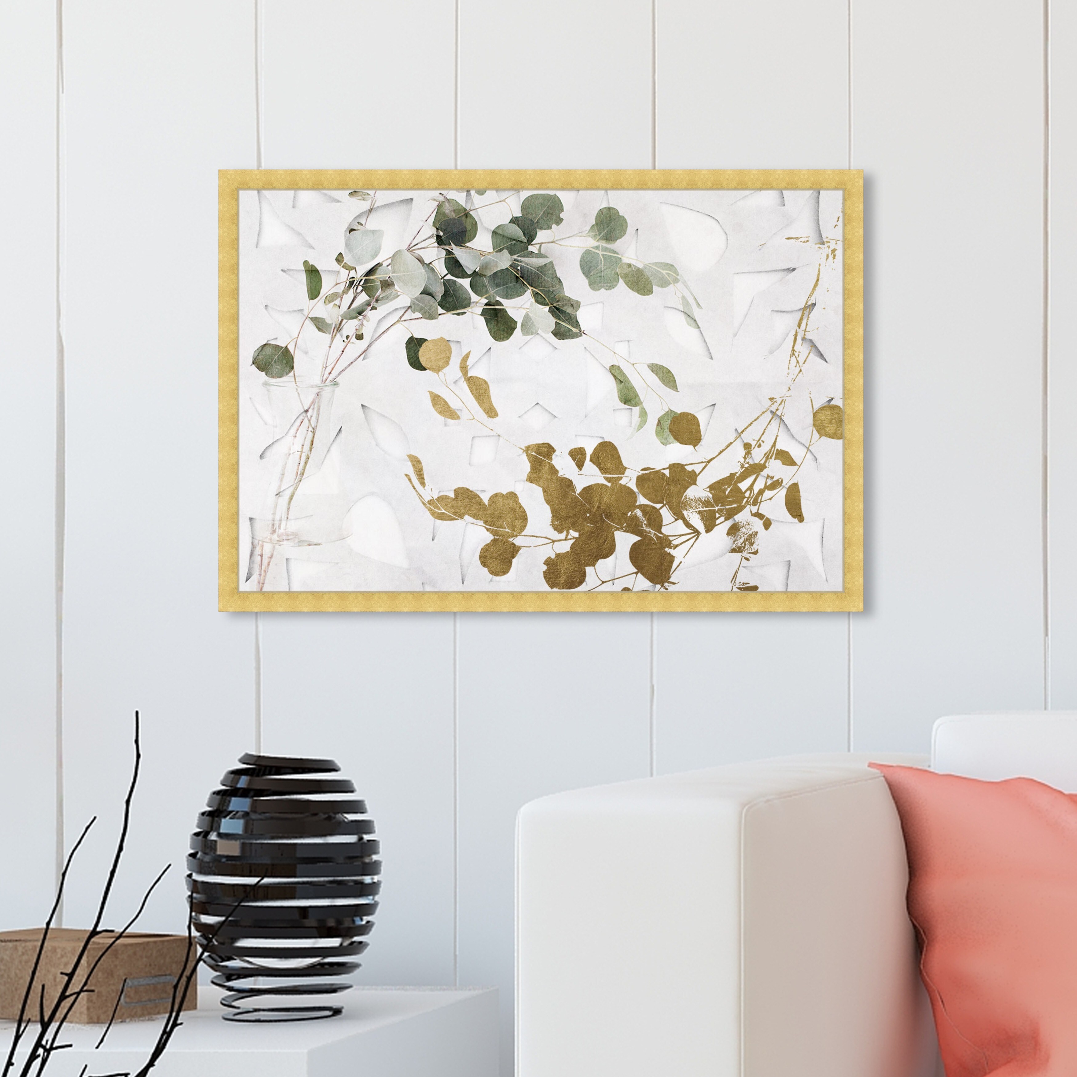 Oliver Gal 'Golden Leaves' Floral and Botanical Wall Art Framed Print Botanicals - Gold, Green