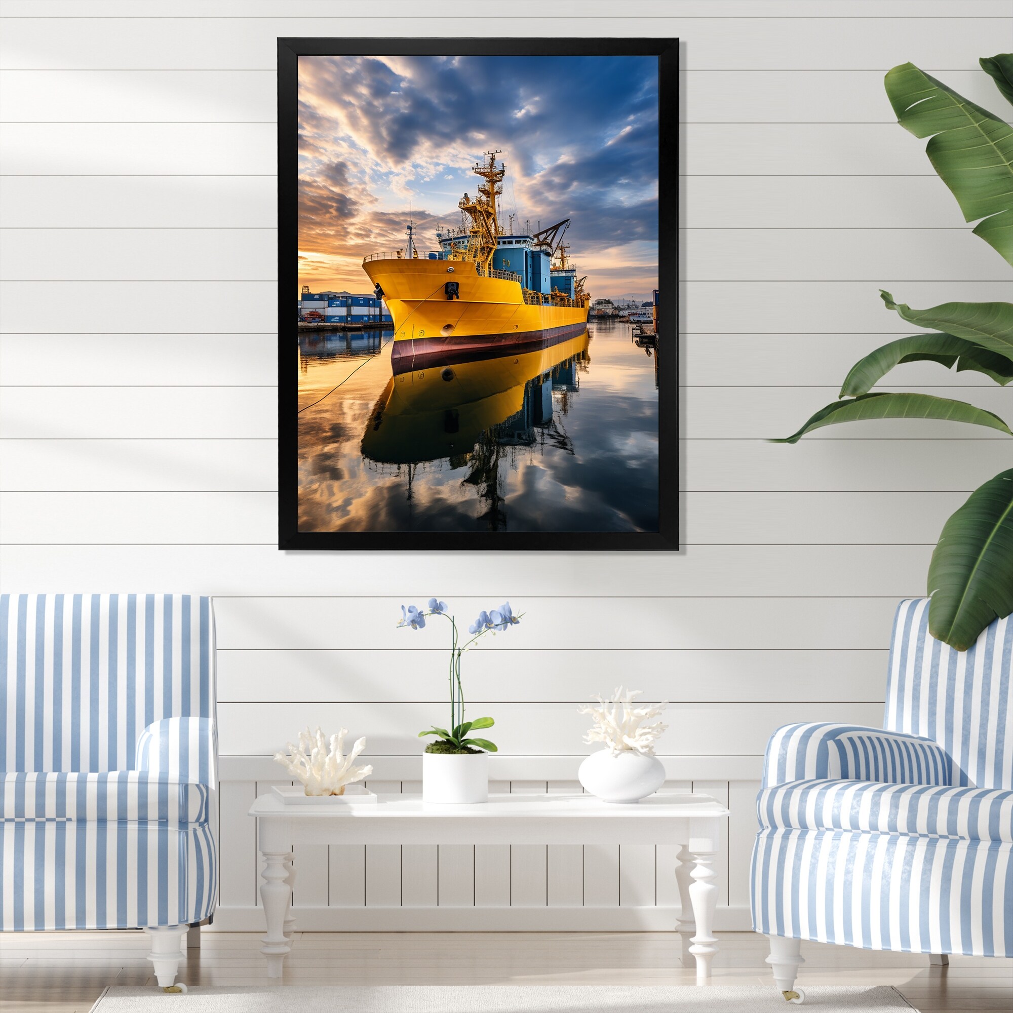 Designart "Port Port of Contrasts I" Port Landscape Framed Wall Art Prints