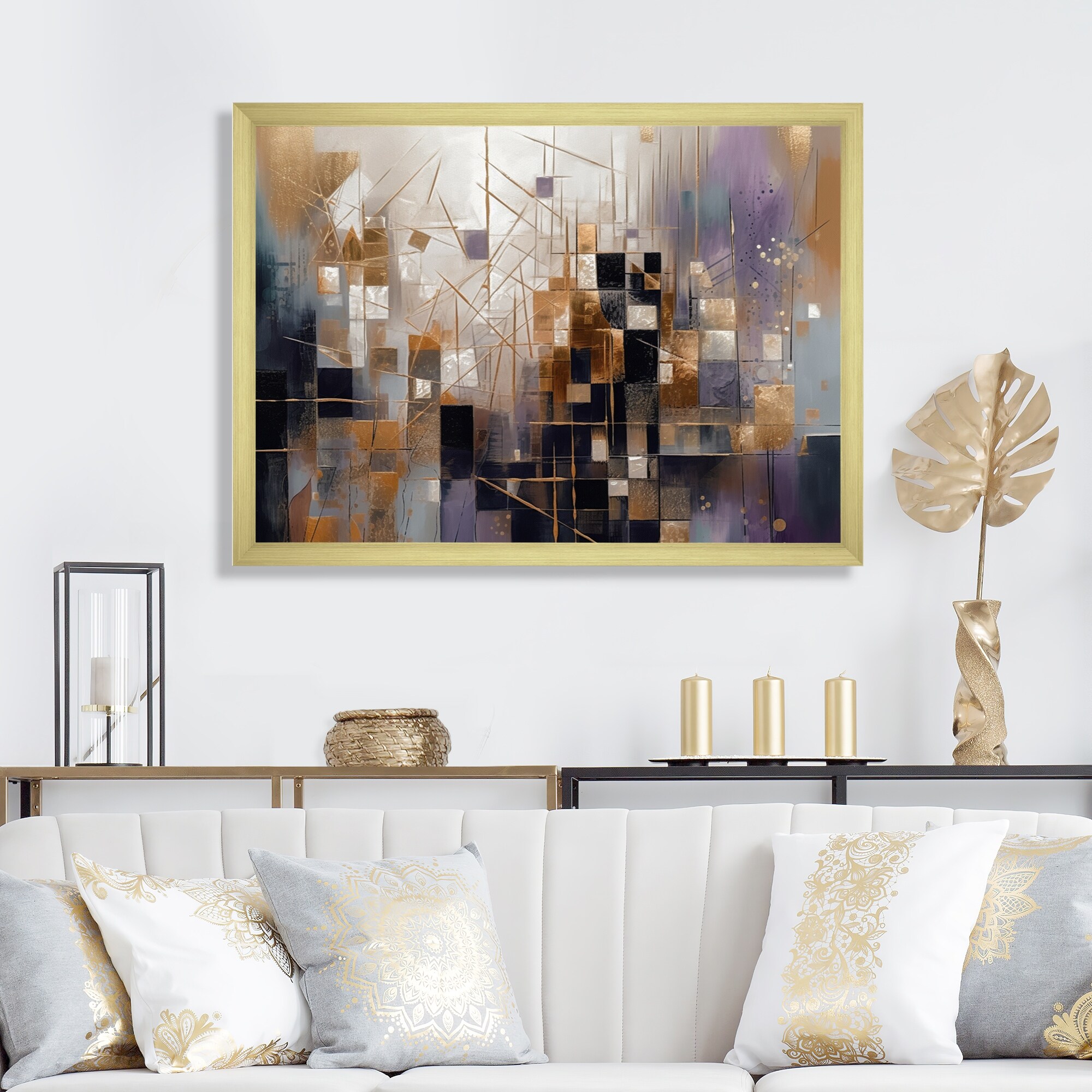 Designart "Soft Color Composition I" Modern Geometric Framed Wall Art for Living Room