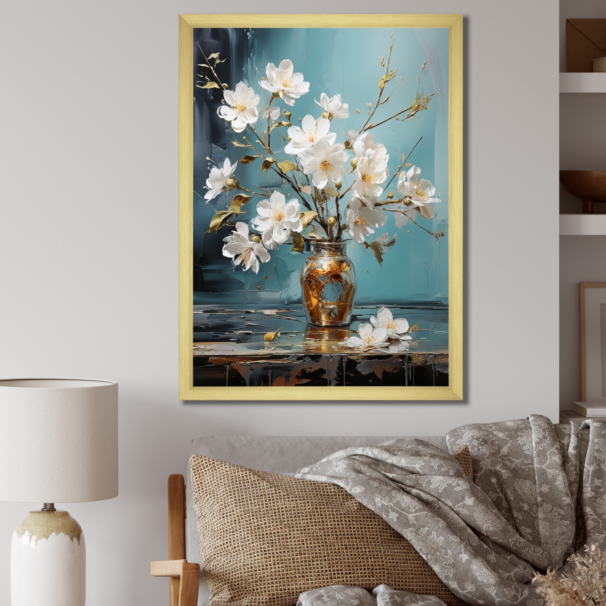 Designart "Apple Blossom Monochromatic Elegance XVIII" Apple Blossom Framed Wall Art Living Room