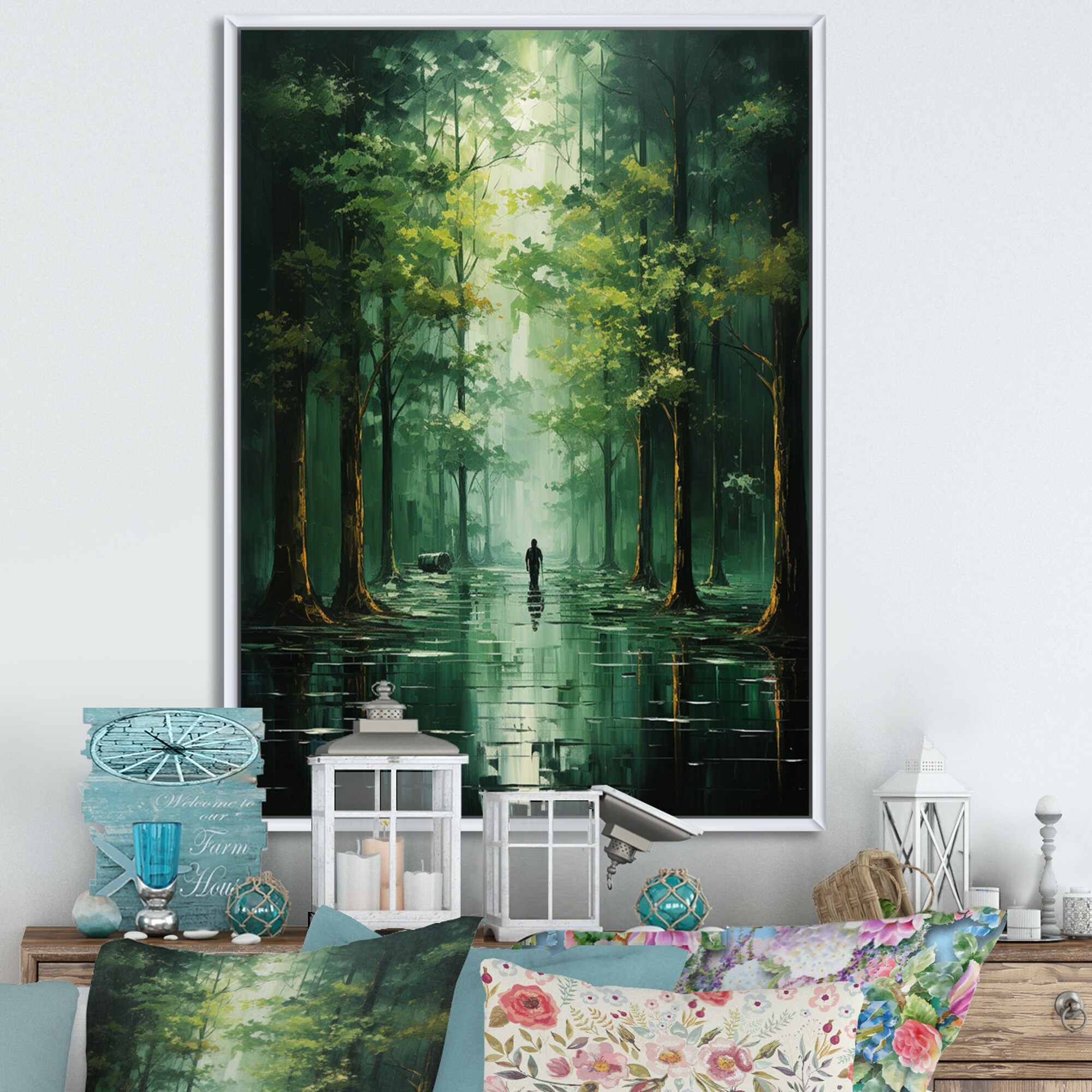 Designart "Solitude In Forest of Emerald II" Forest Framed Canvas Art Print