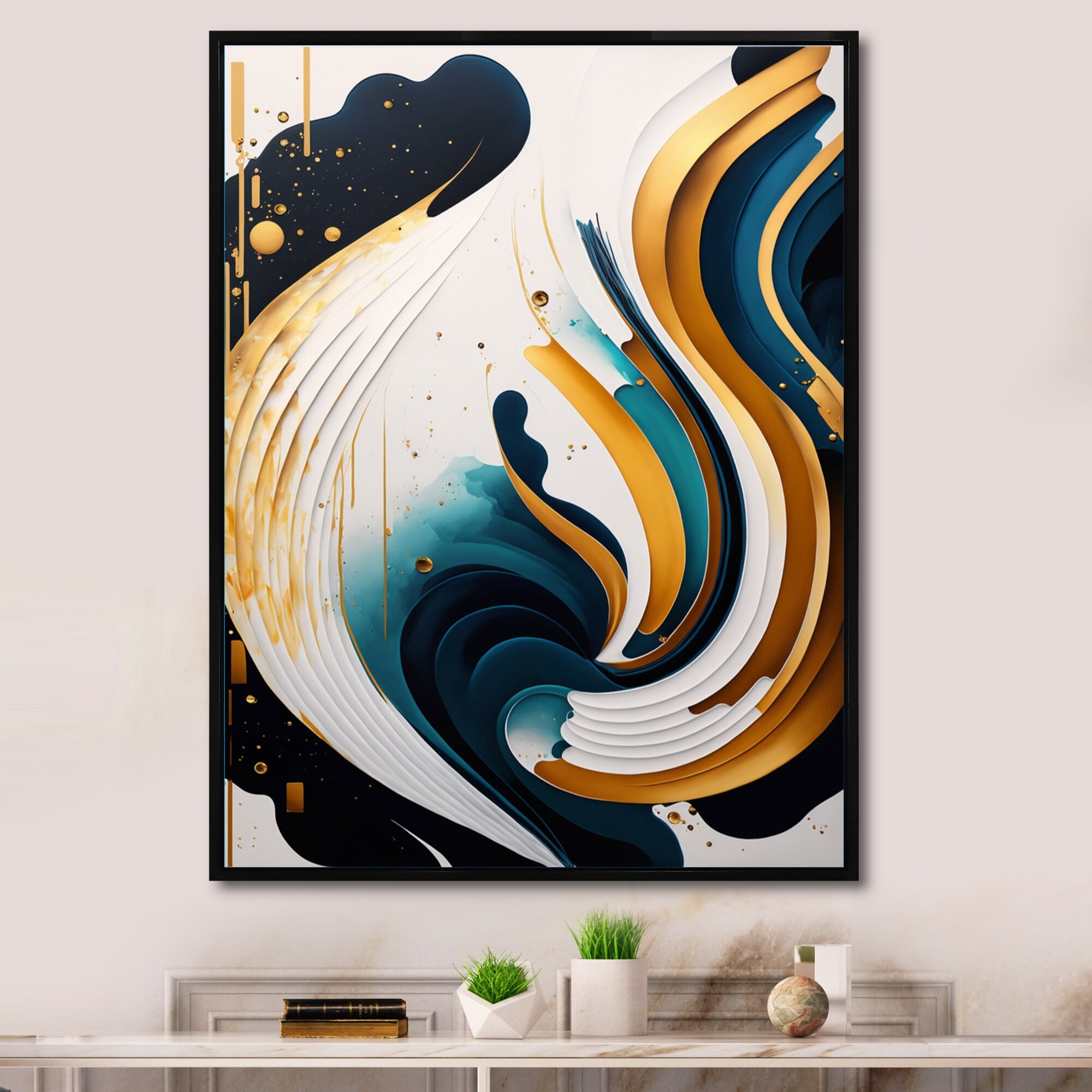 Designart "Blue And Gold Modern Art Abstract Painting III" Modern Framed Canvas Art Print