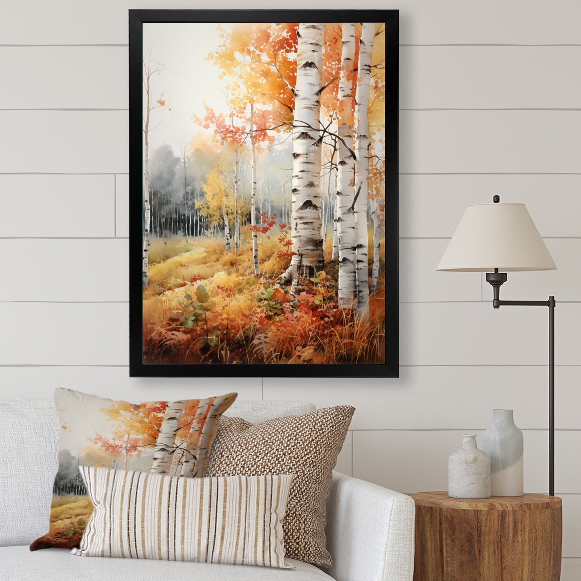 Designart "Birch Woods Autumn Tapestry IX" Tree Birch Framed Canvas Wall Art