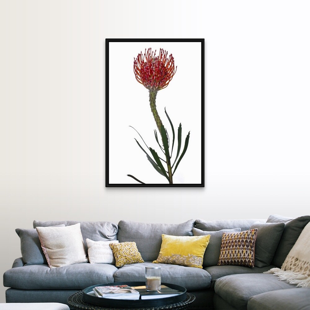 "Pincushion Protea flower" Black Float Frame Canvas Art