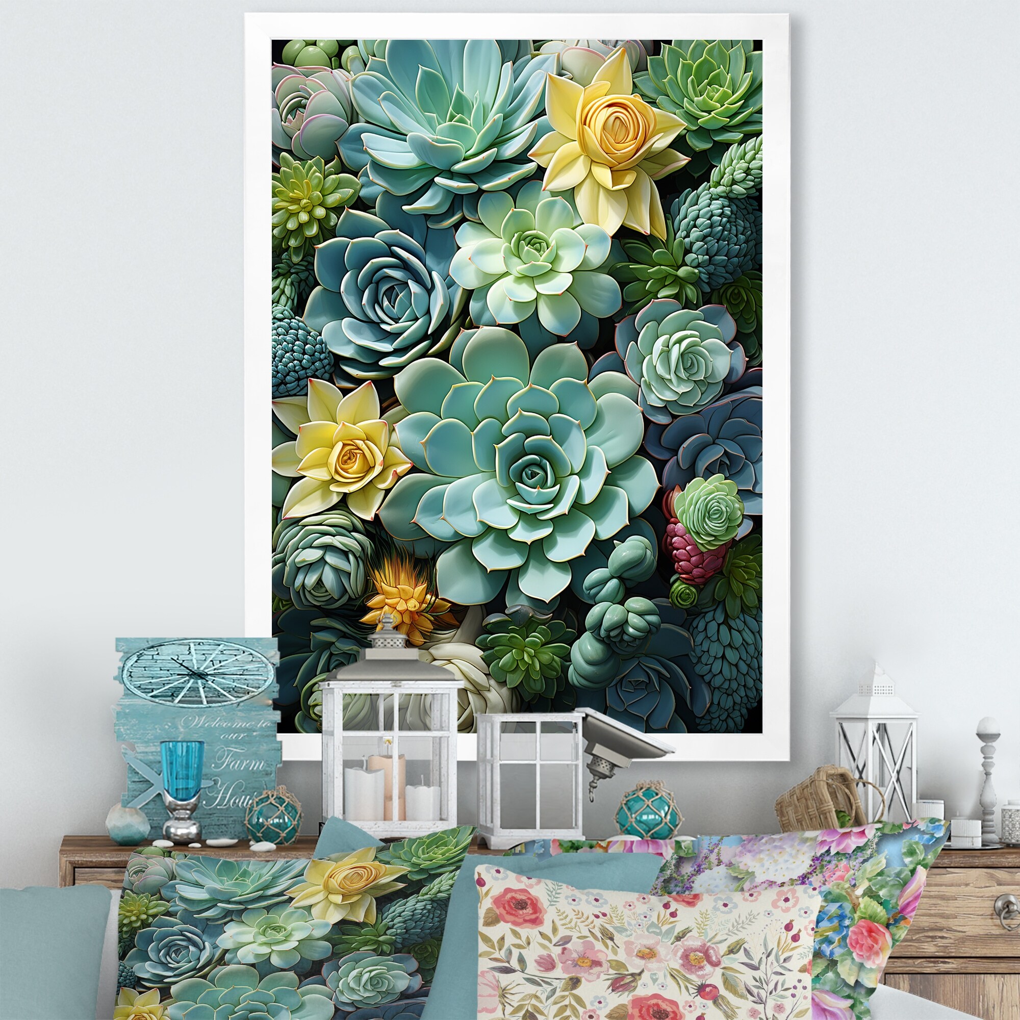 Designart "Colorful Succulent Romantic Impression I" Succulent Framed Wall Art Prints