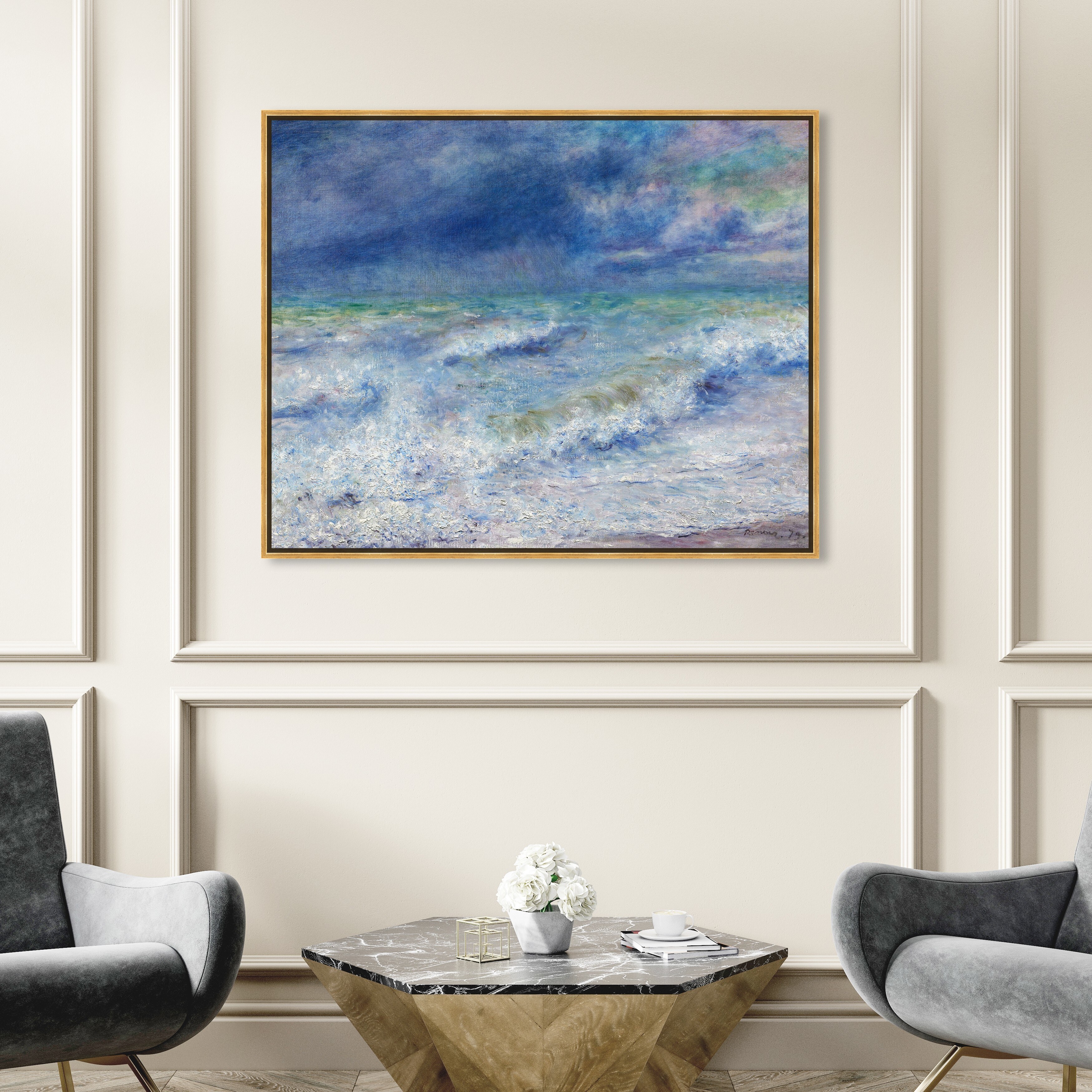Oliver Gal 'Renoir - Seascape 1897' Classic and Figurative Blue Wall Art Canvas Print
