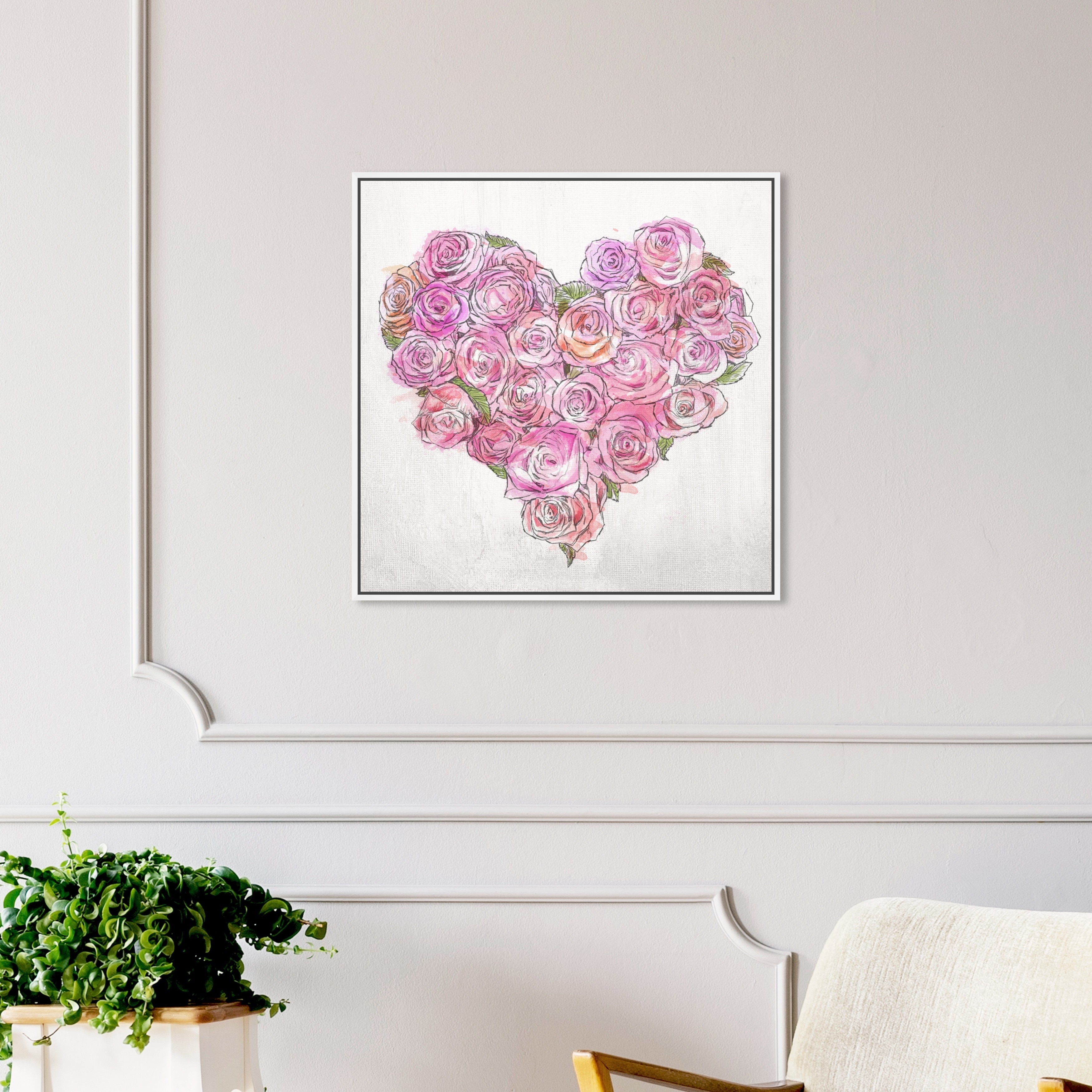 Oliver Gal 'Heart of Roses' Floral and Botanical Wall Art Framed Canvas Print Florals - Pink, White