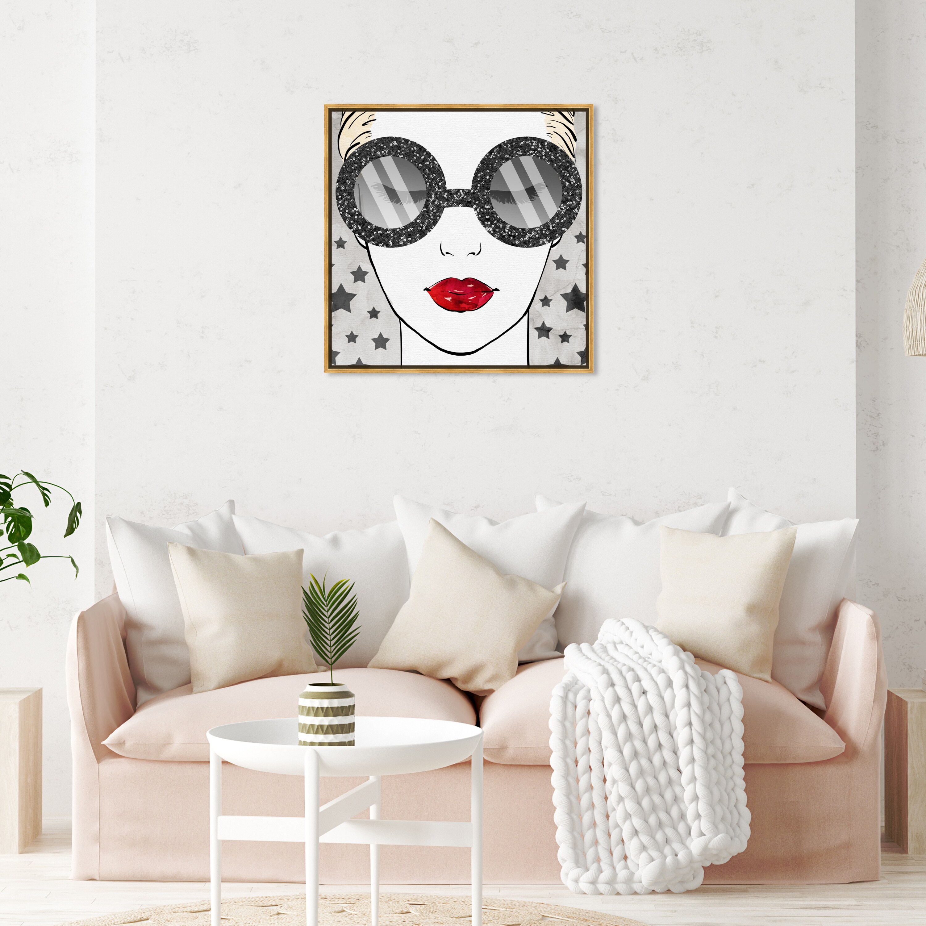 Oliver Gal 'Sequins Shades and Stars' Fashion and Glam Wall Art Framed Canvas Print Accessories - White, Red