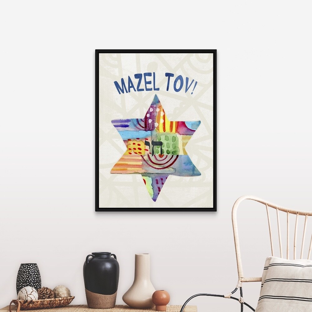"Mazel Tov Star" Black Float Frame Canvas Art