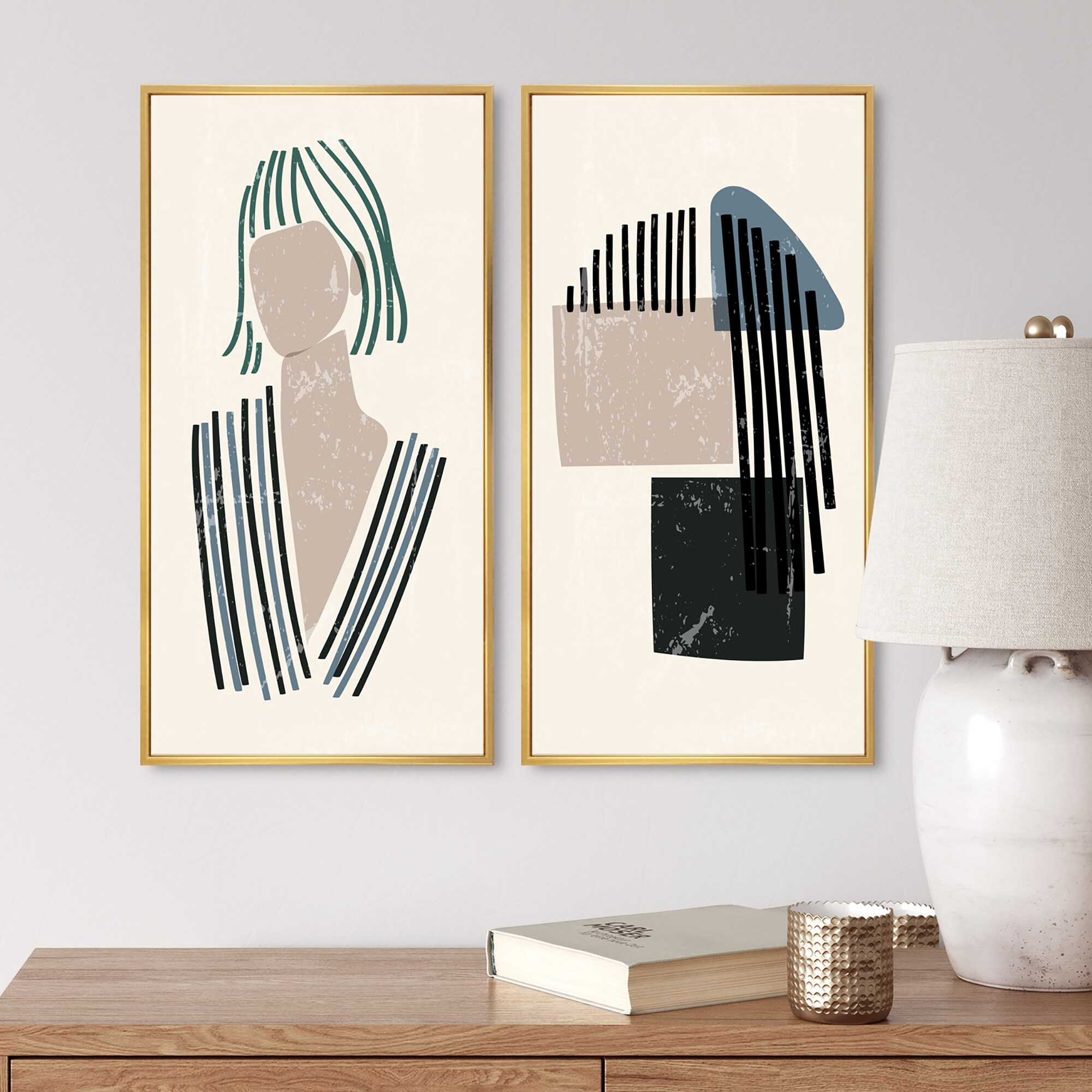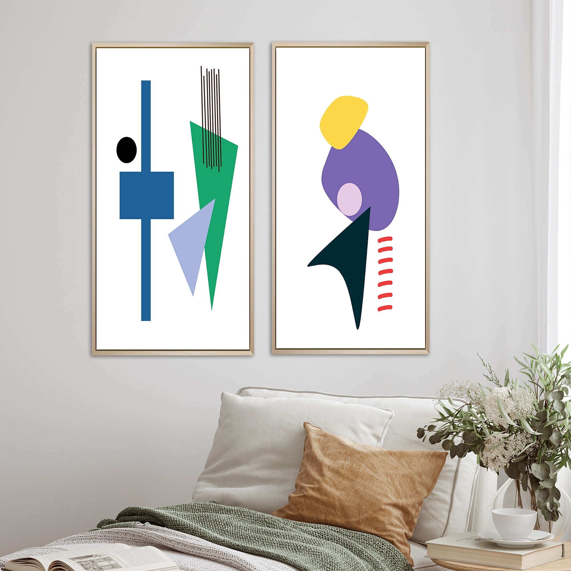 Designart "Minimalistic Retro Color Geometrics III" Geometric Framed Art Set of 2 Pieces