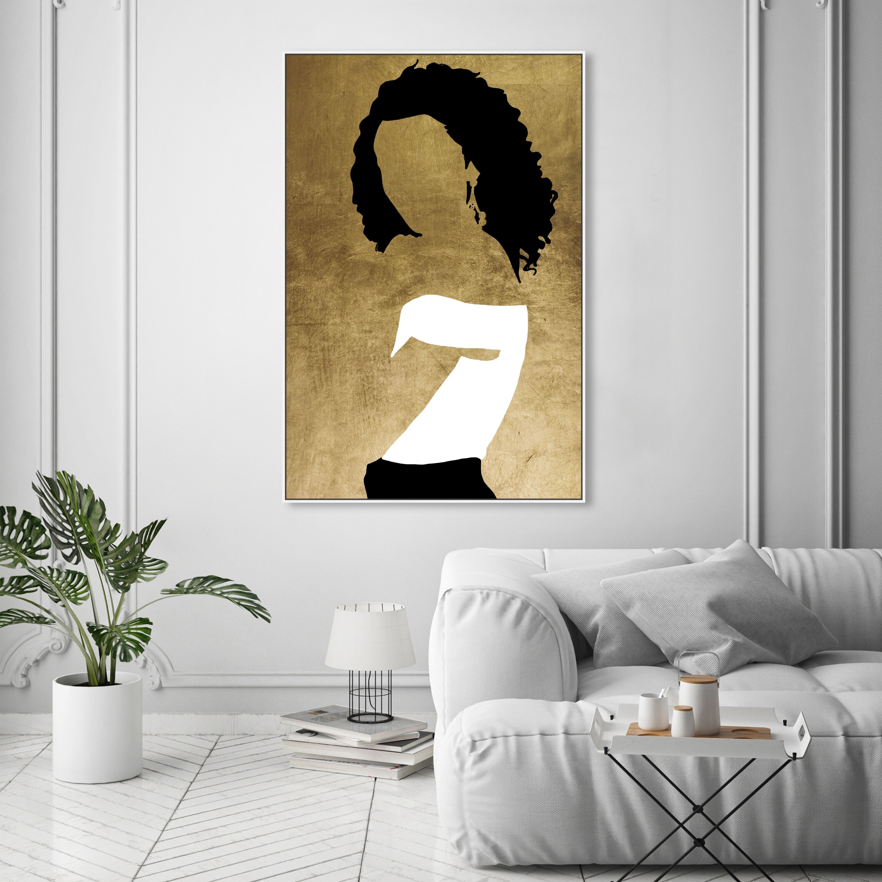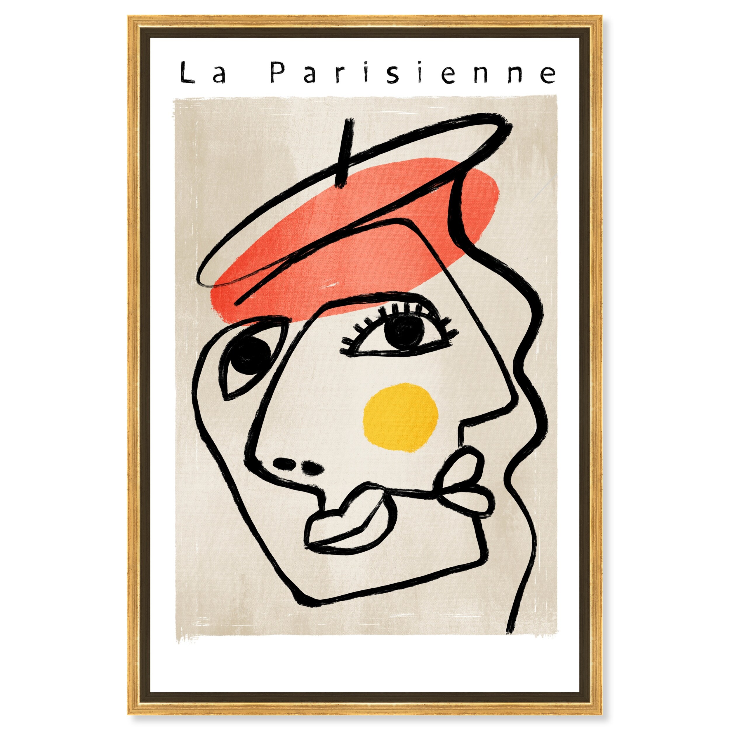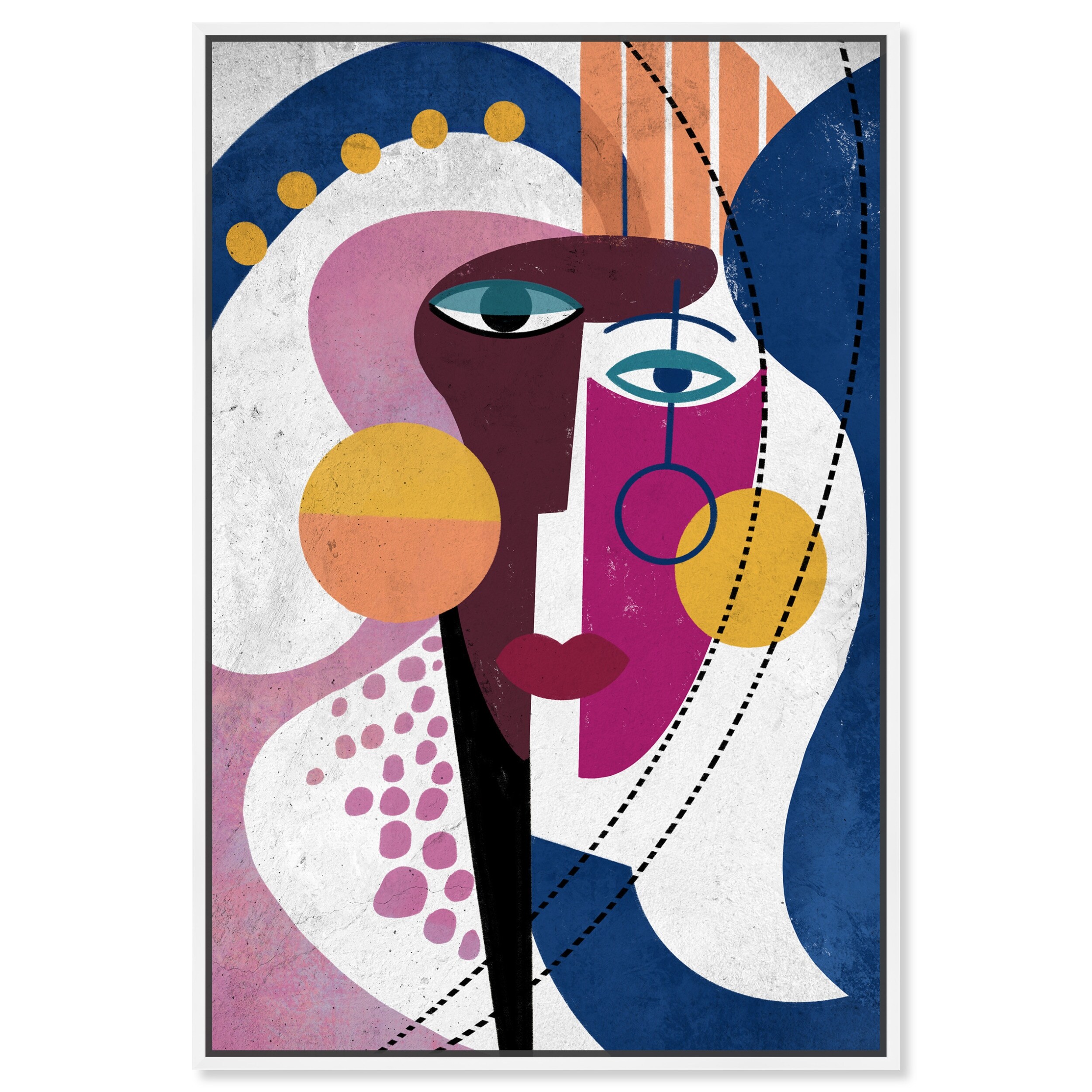 "La Parisienne", Cubist French Woman Modern White Framed Canvas Wall Art Print for Bedroom