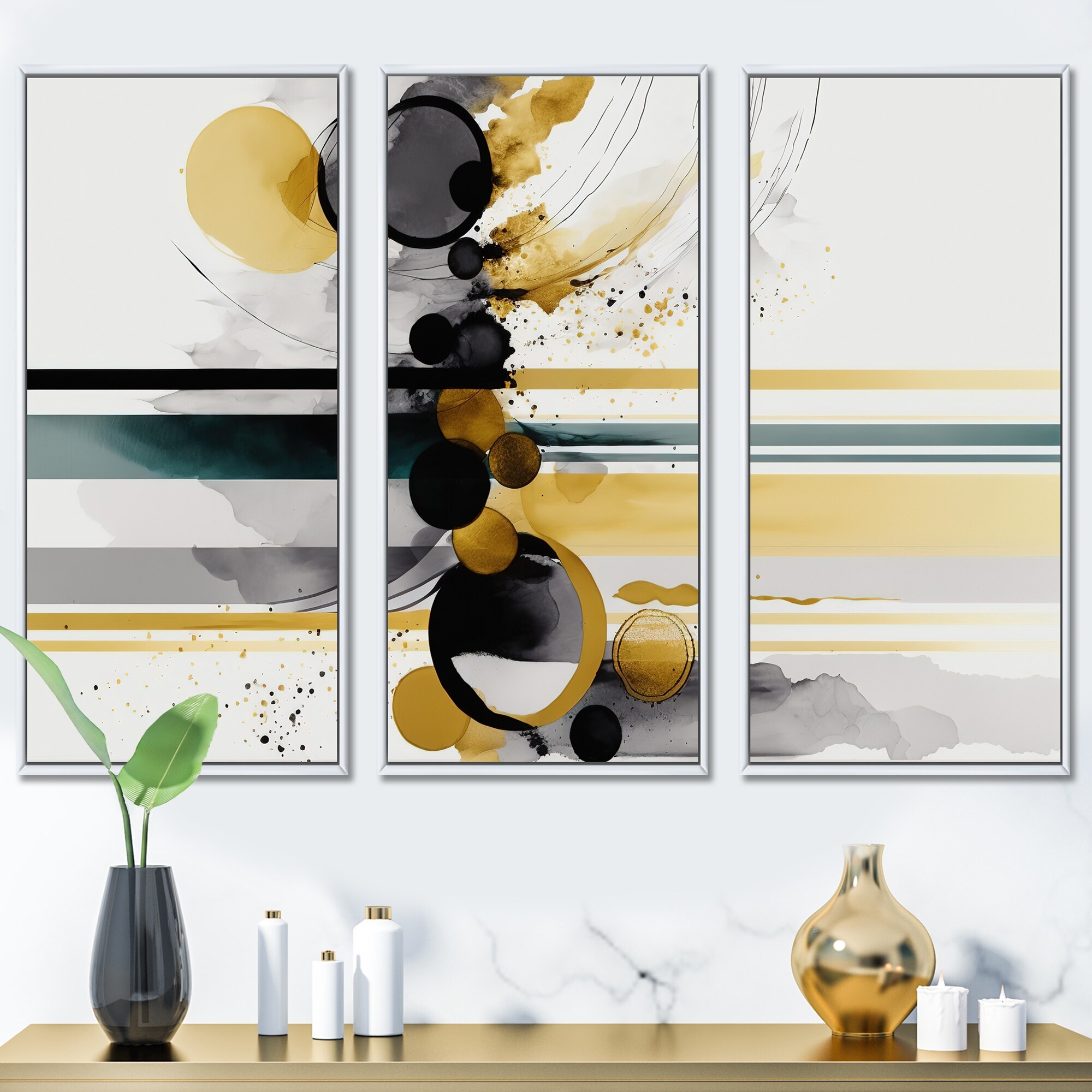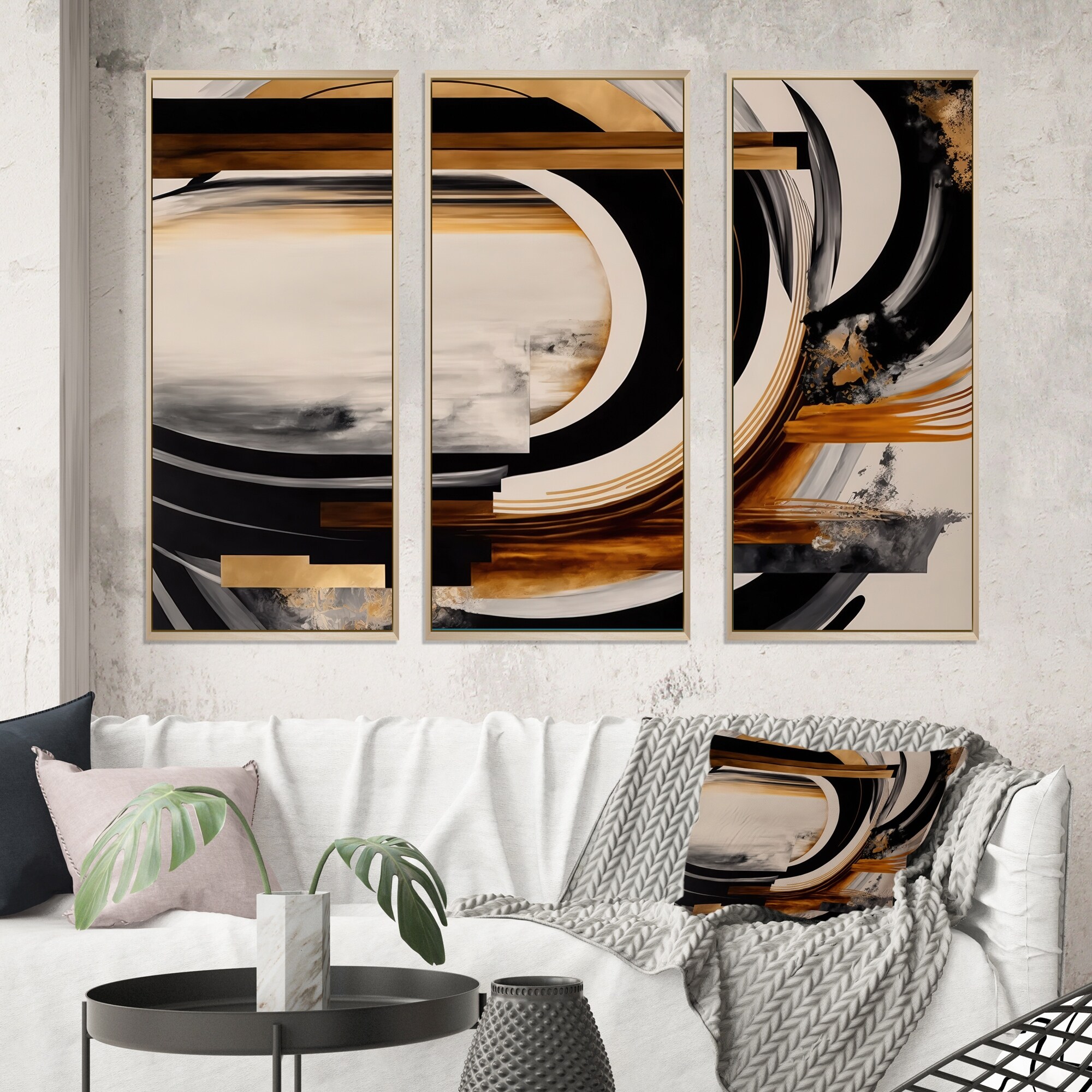 Designart "Abstract Transitional Shapes Black I" Modern Shapes Transitional Framed Canvas Art Print - 3 Panels