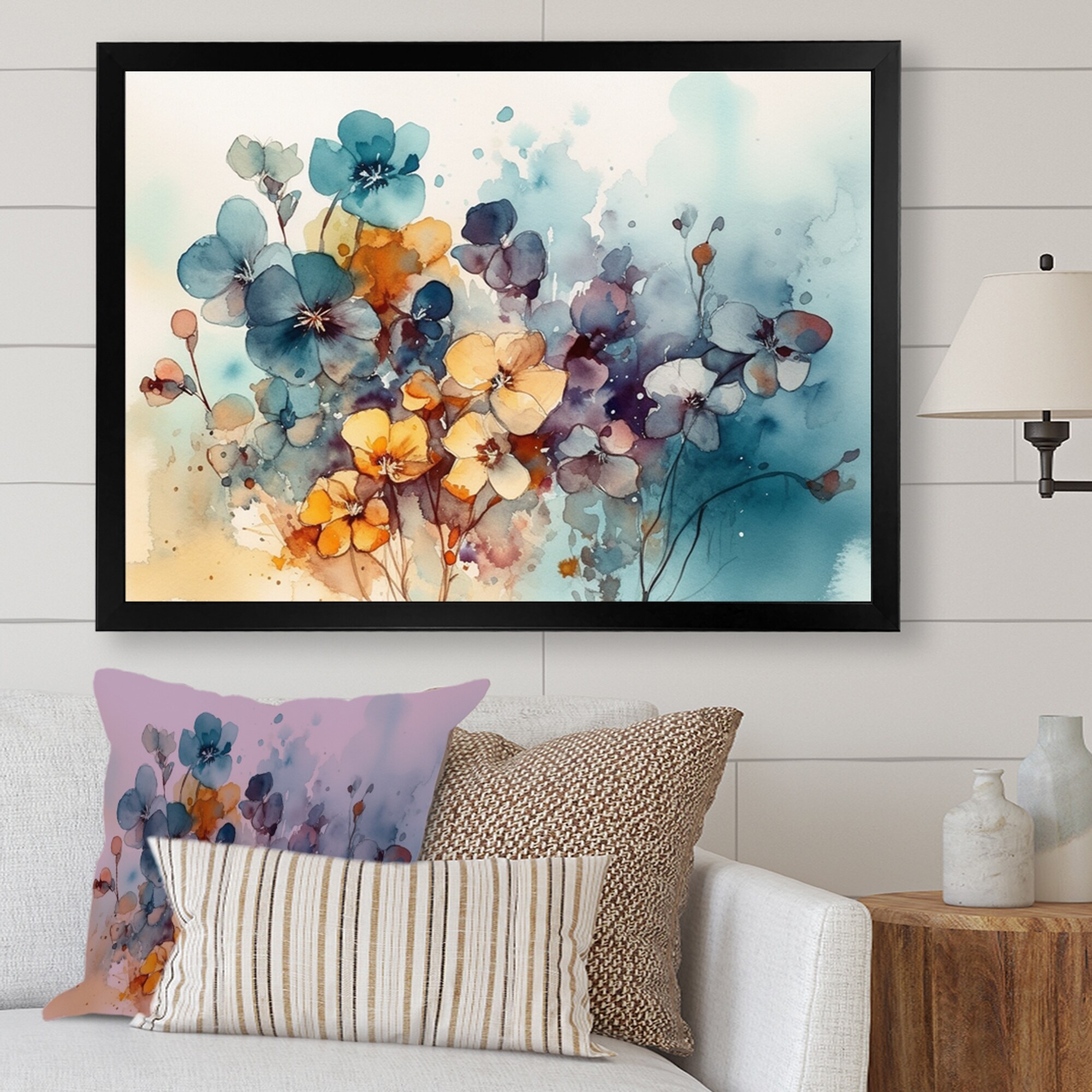Designart "Yellow Floral Violet Symphony" Floral Violet Framed Canvas Wall Art
