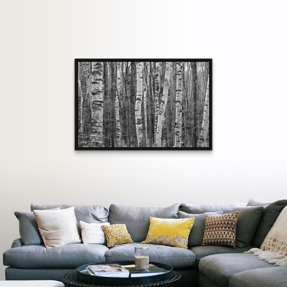 "Birches stand clustered on Savoy Mountain near Tannery Falls." Black Float Frame Canvas Art