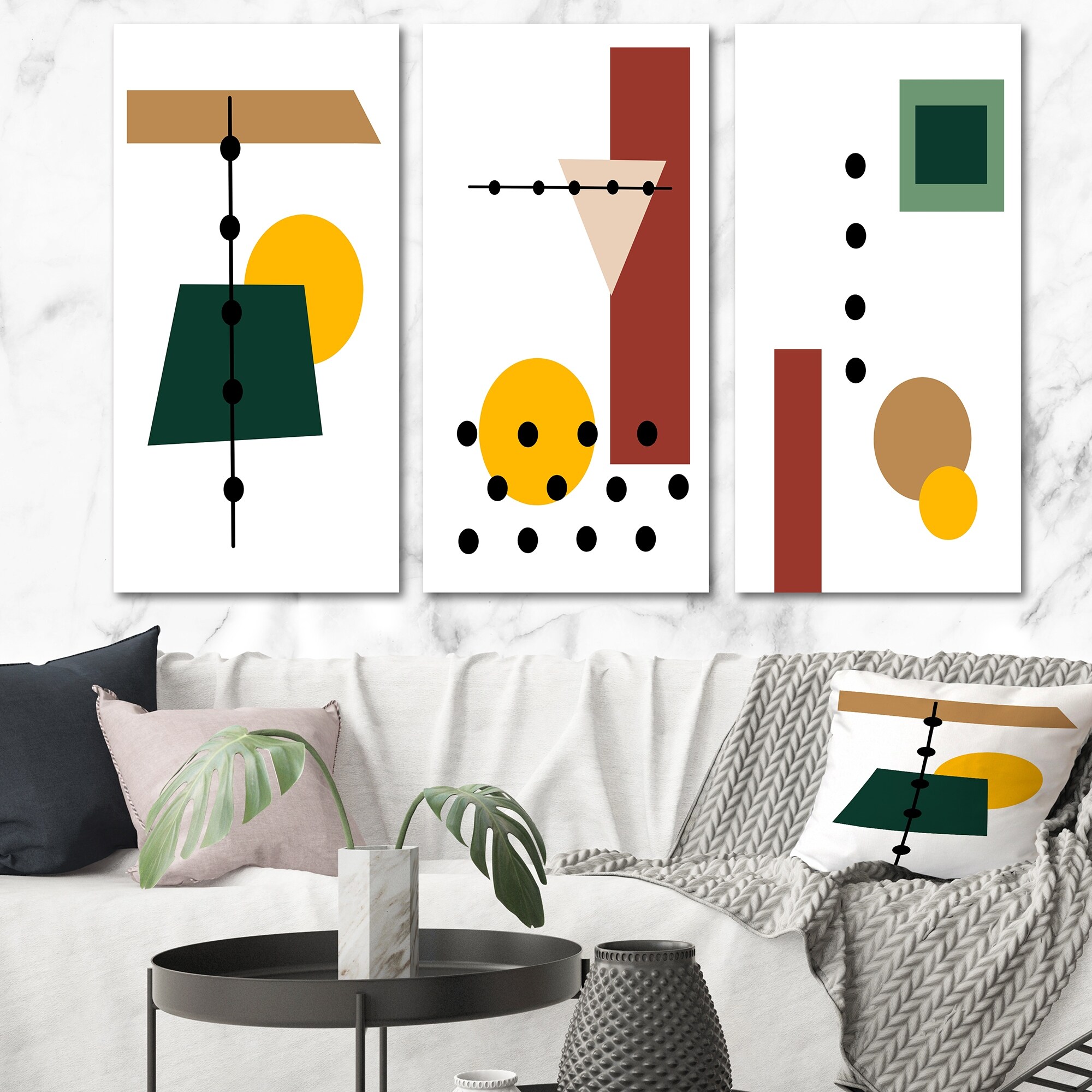 Designart 'Scandinavian Minimalistic Geometrics I' Mid-Century Modern Art Set of 3 Pieces