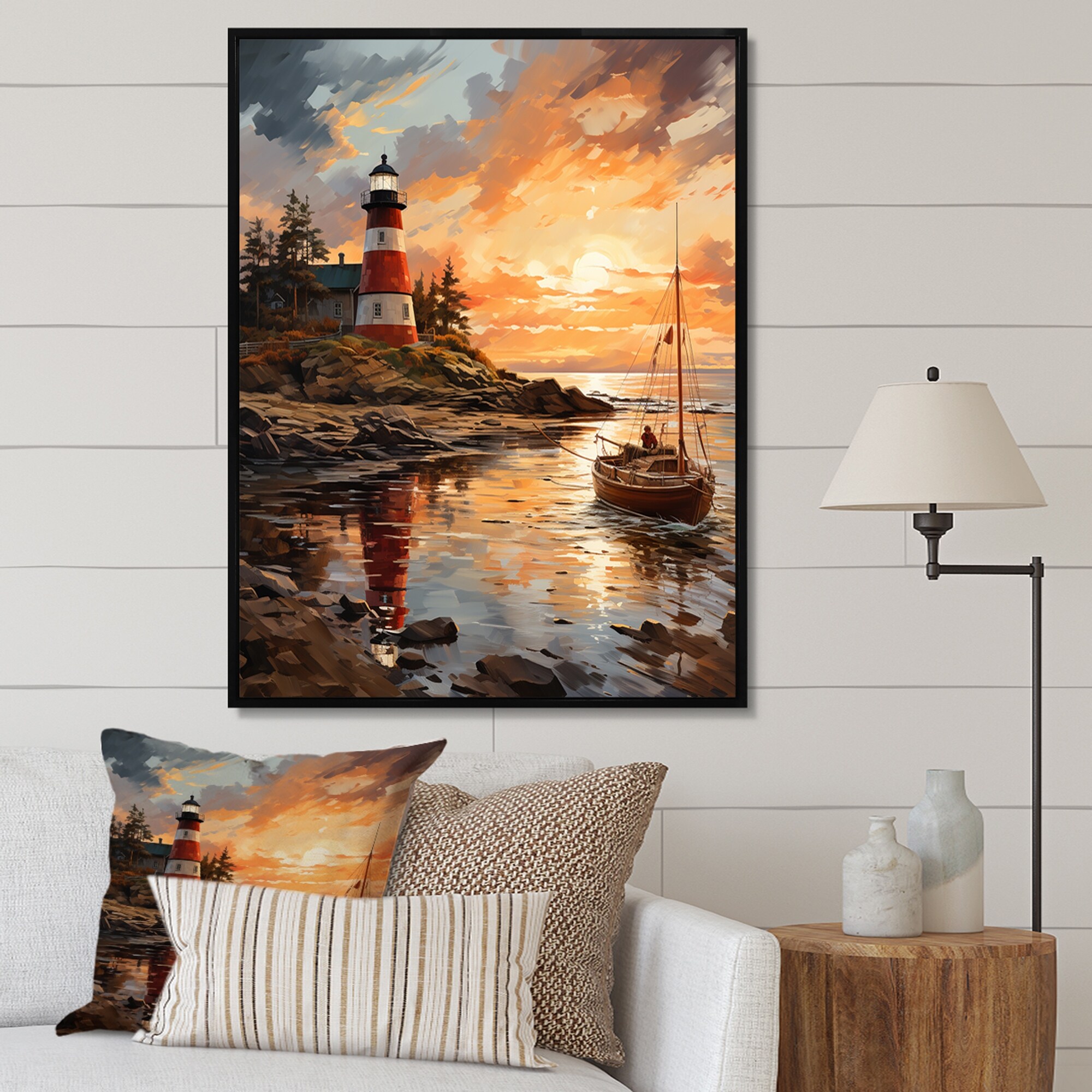 Designart "Lighthouses By the Cliff I" Lighthouses Framed Wall Art Prints