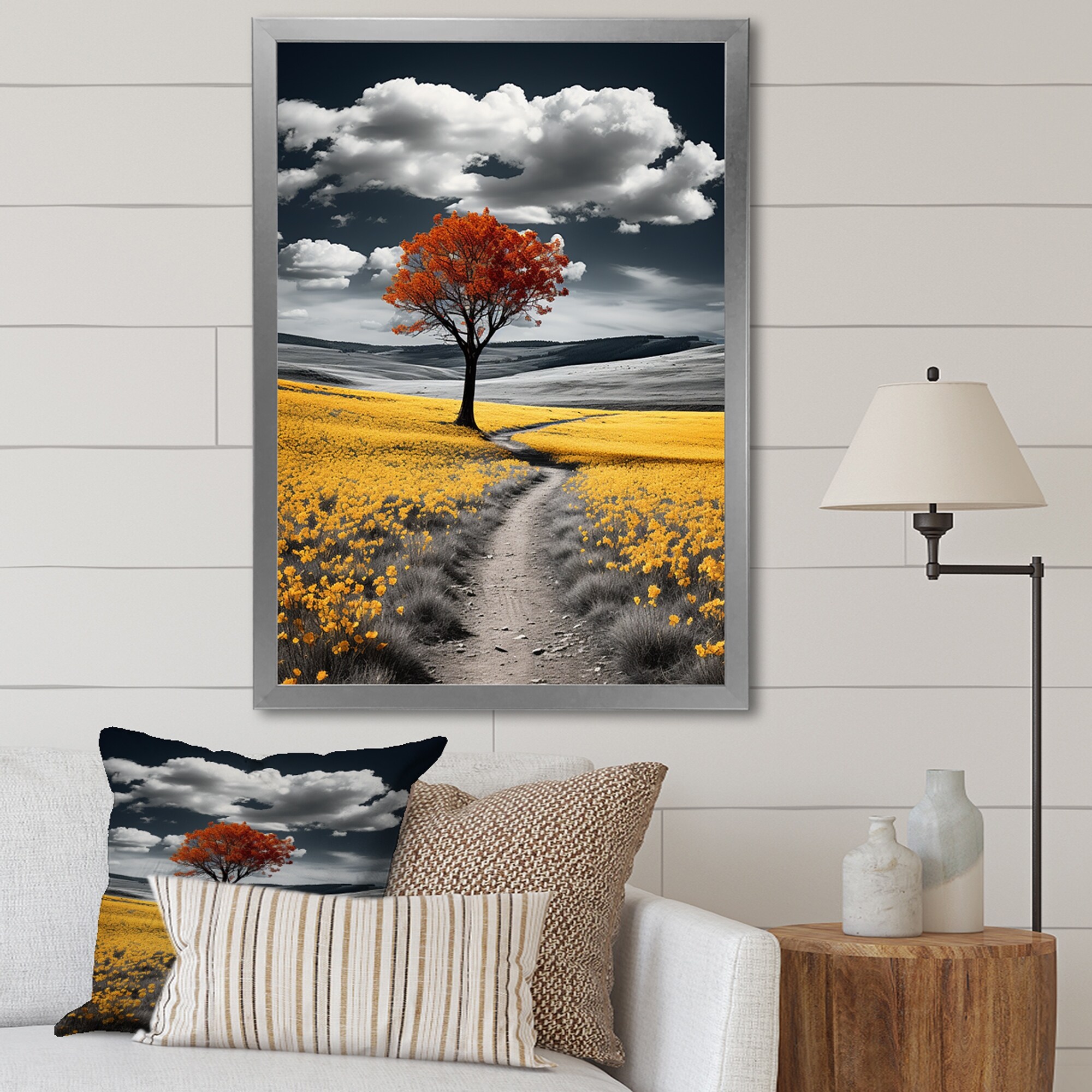 Designart "Road In the Yellow Wilderness" Road Framed Wall Art Living Room