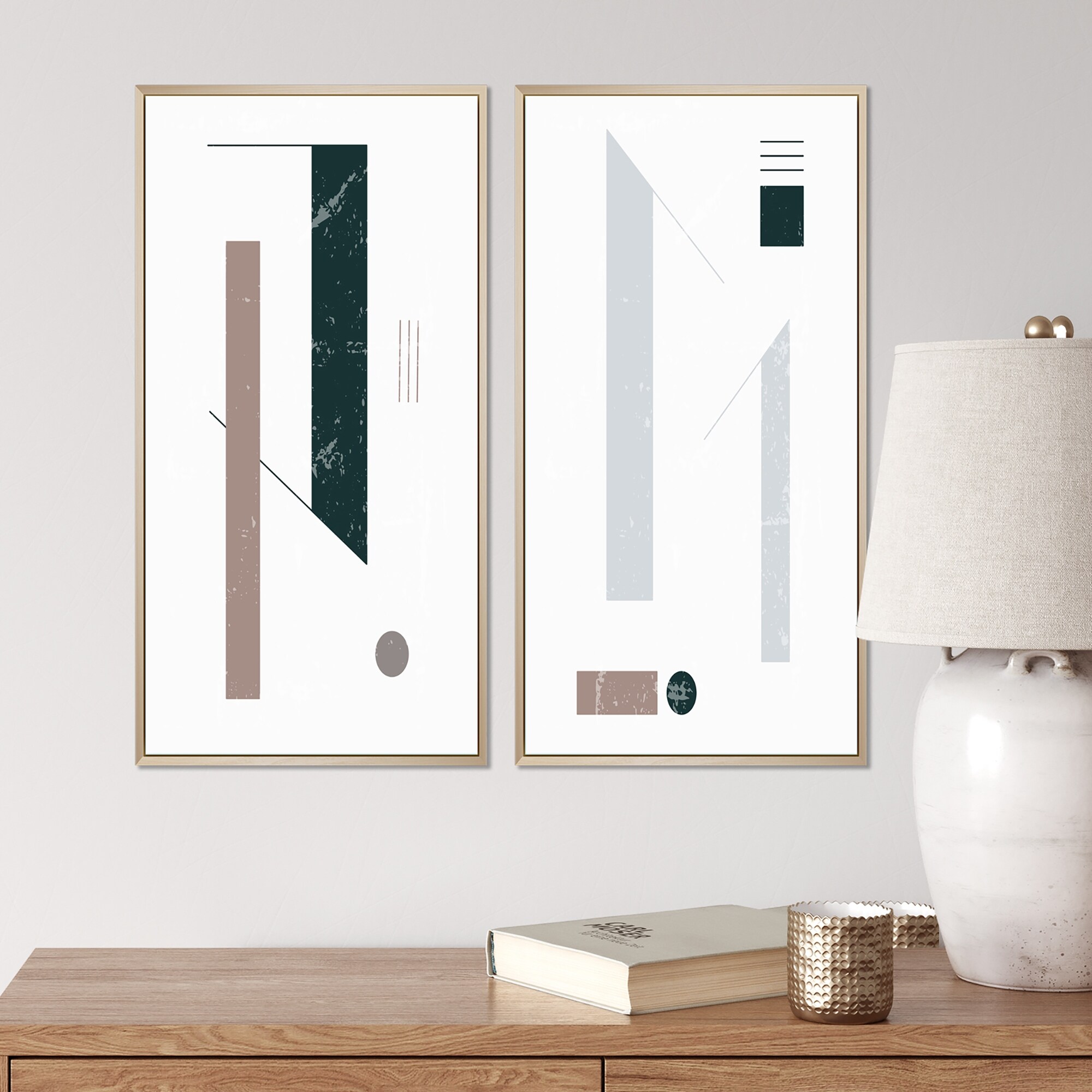 Designart "Scandinavian Abstract Geometric Typography XI" Geometric Framed Art Set of 2 Pieces