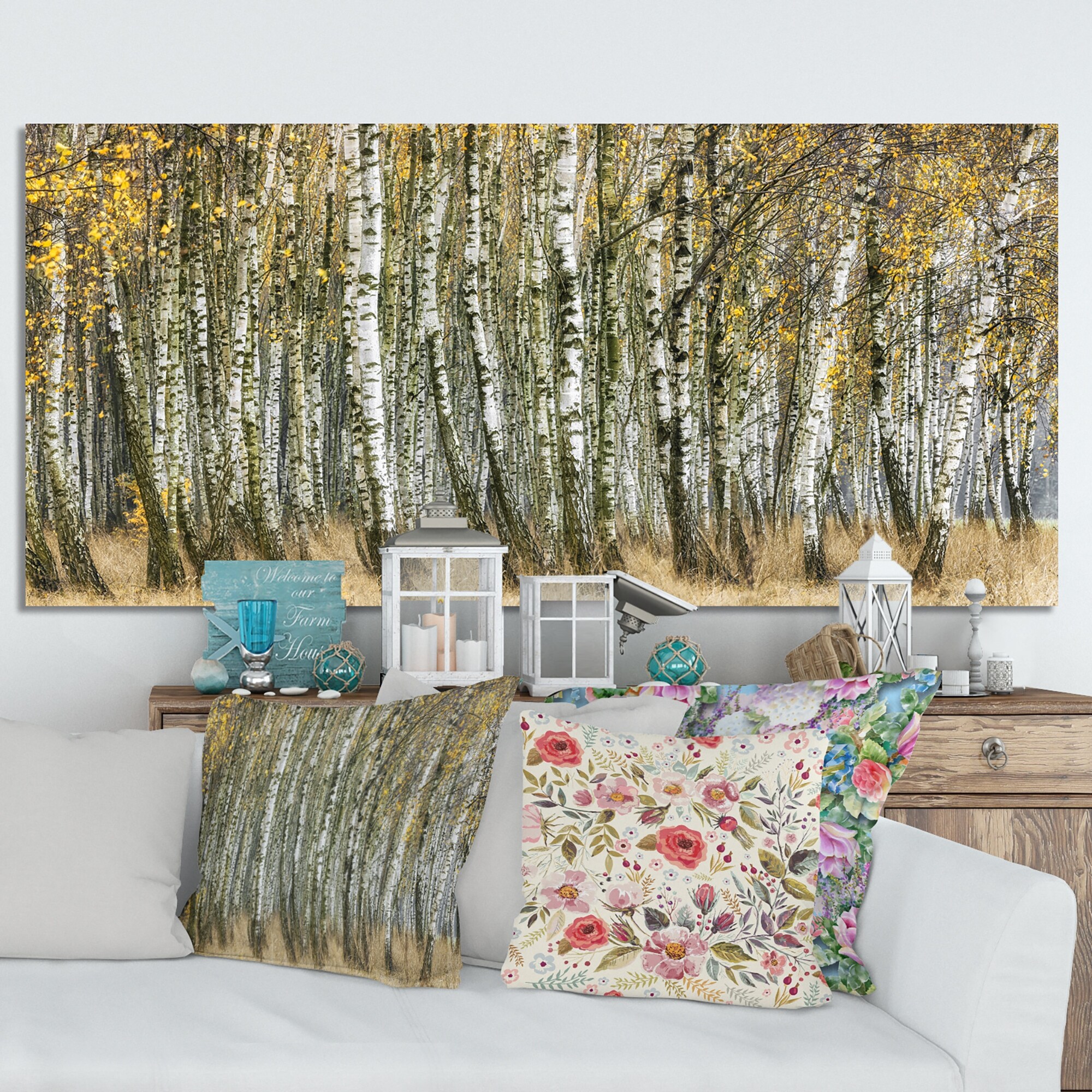 Designart "Misty Morning Autumn Birch Forest II" Landscapes Canvas artwork