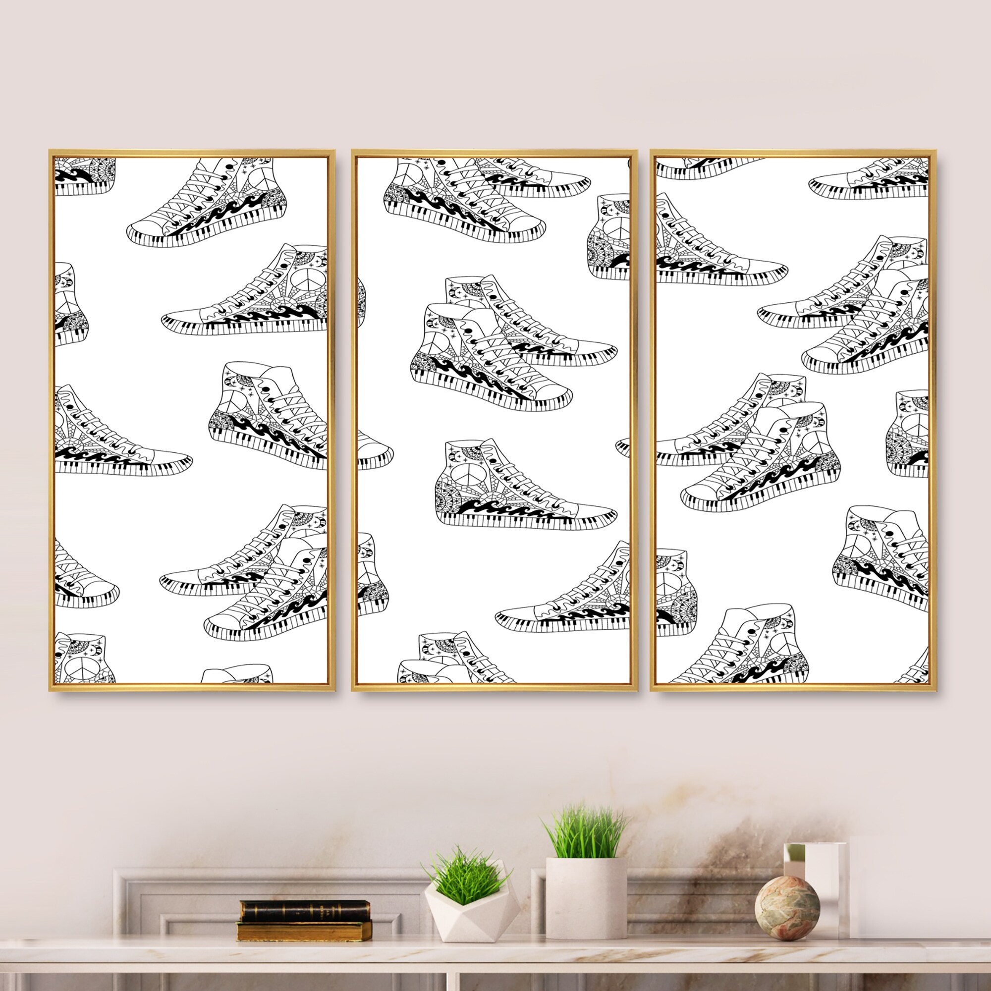Designart "Monochrome Sneakers I" Modern Framed Artwork Set of 3 - 4 Colors of Frames