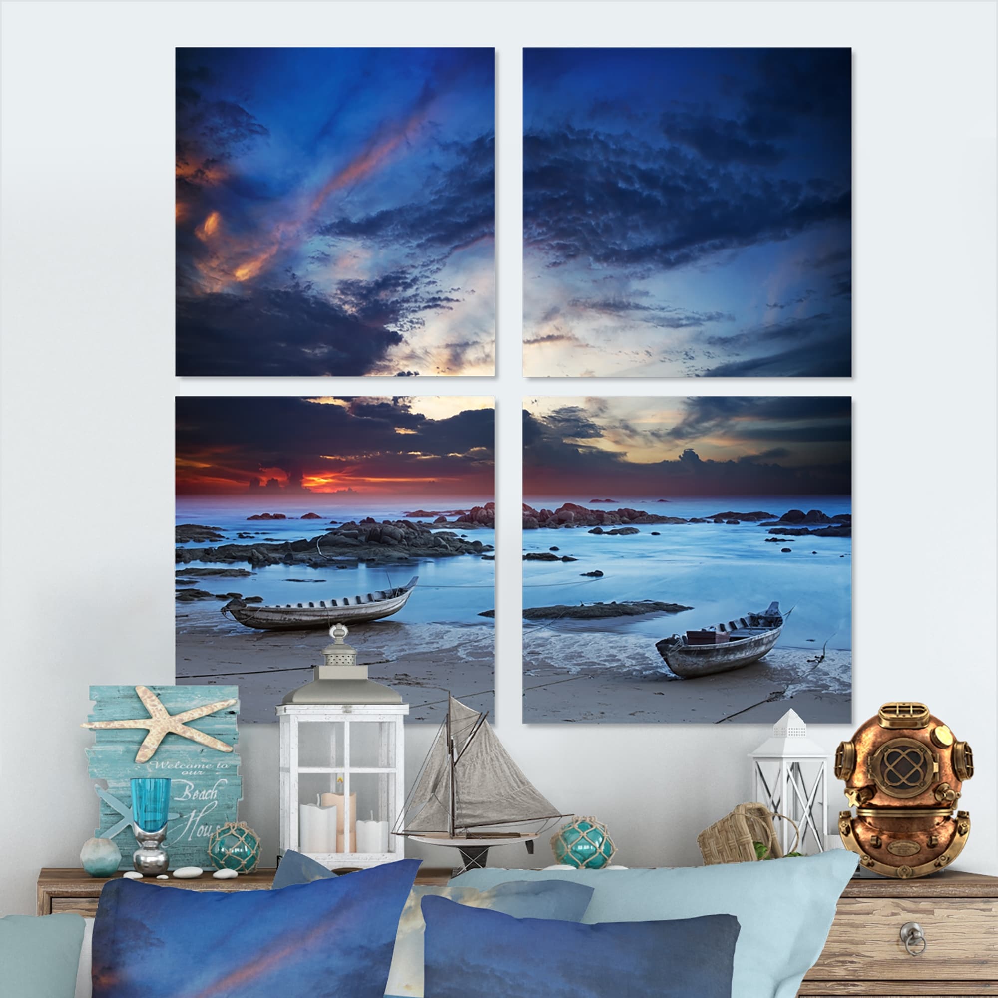 Designart "Colorful Traditional Asian Boats" Landscape Canvas Wall Art Print
