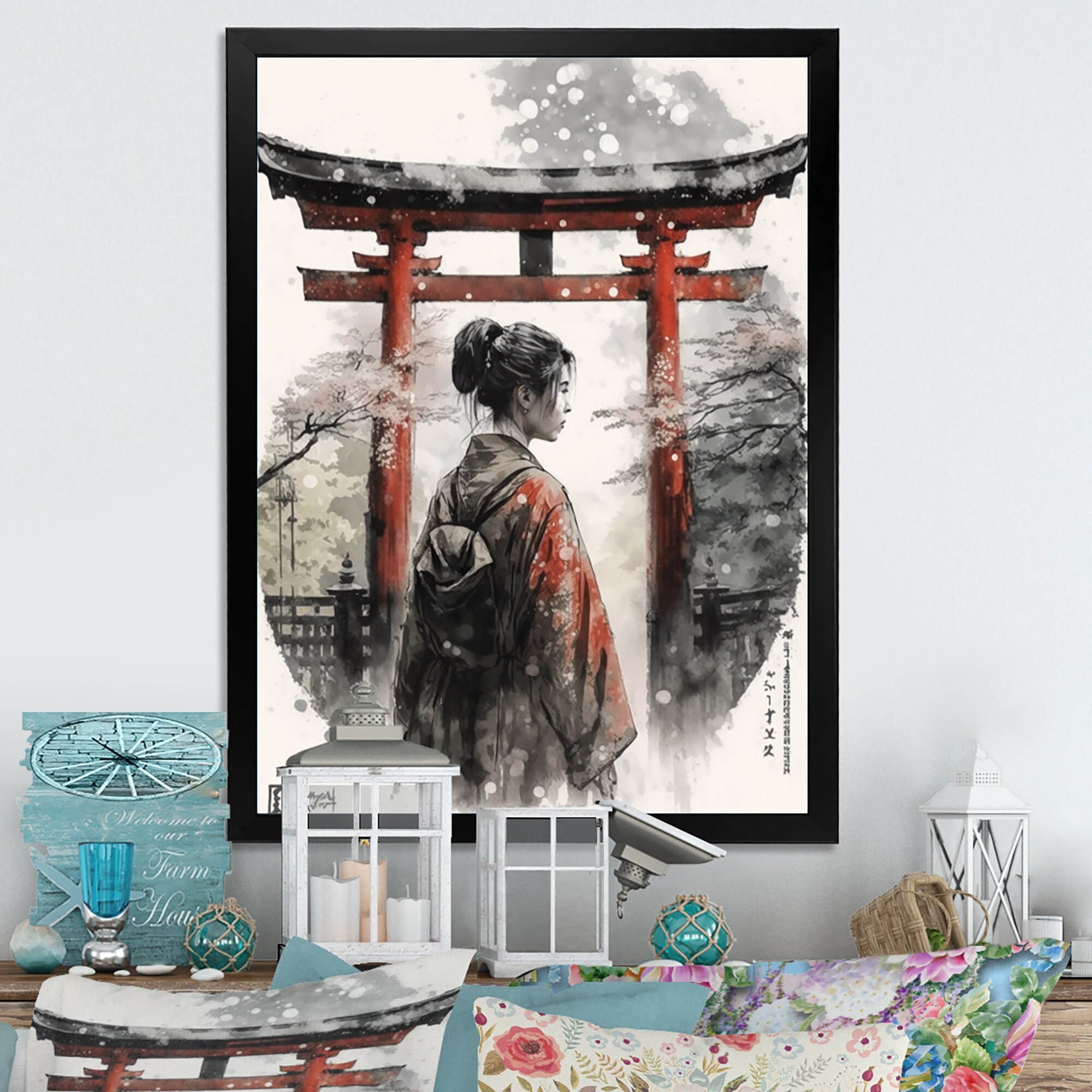Designart "Asian Female II" Japon Landscape Framed Art Print