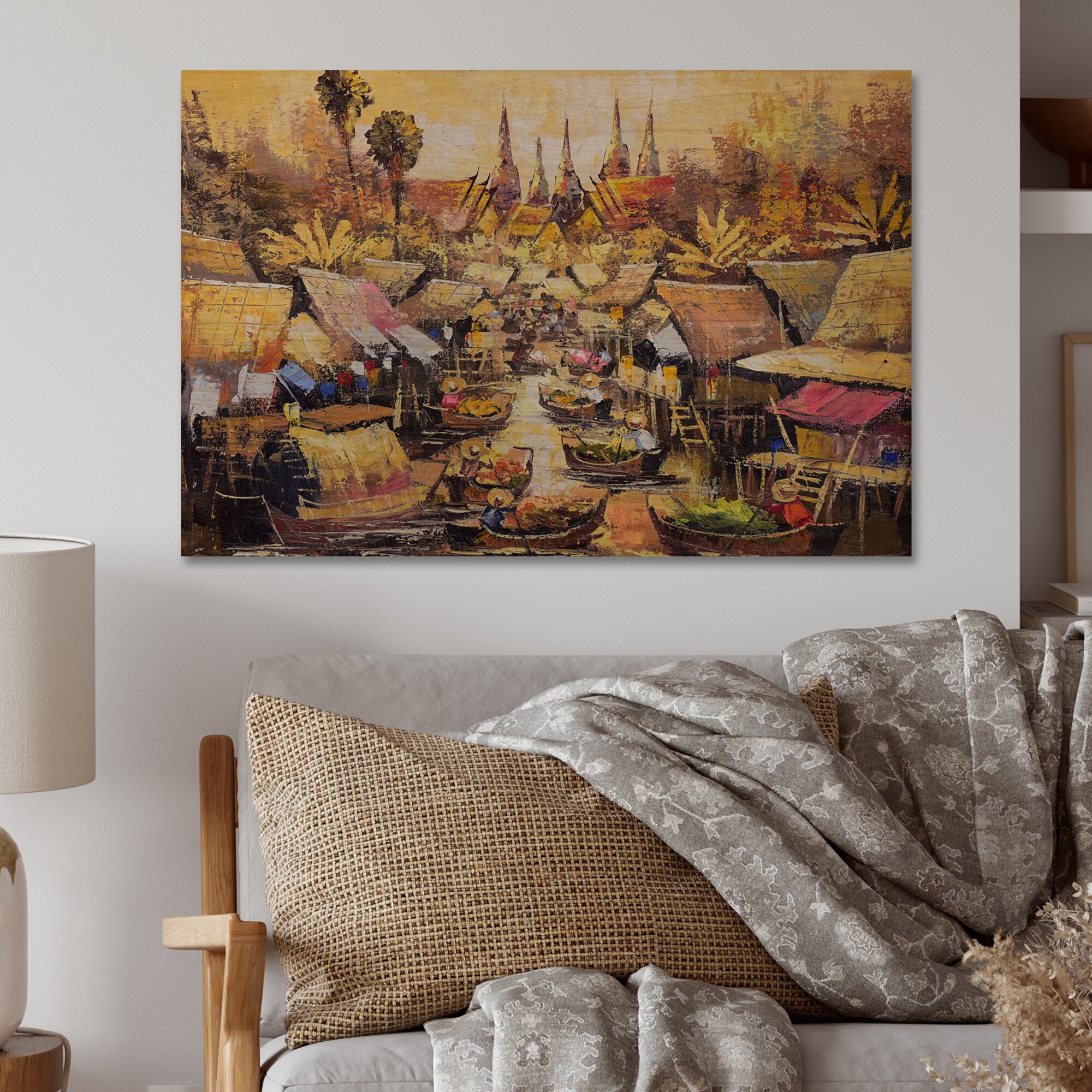 Designart 'Vintage Asian Waterside Life II' Vintage Wood Wall Art - Natural Pine Wood