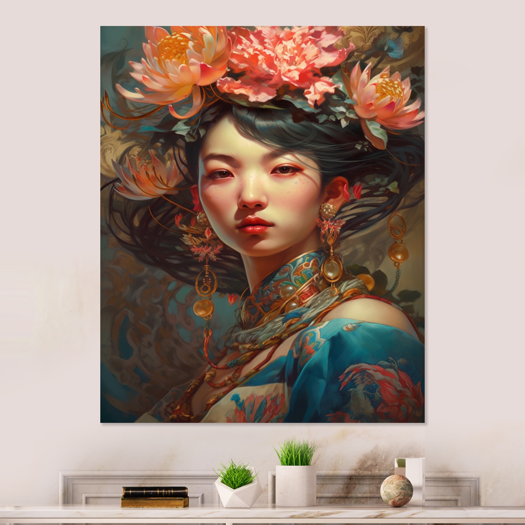 Designart "Female Asian Floral Warriors II" Asian Woman Metal Wall Art