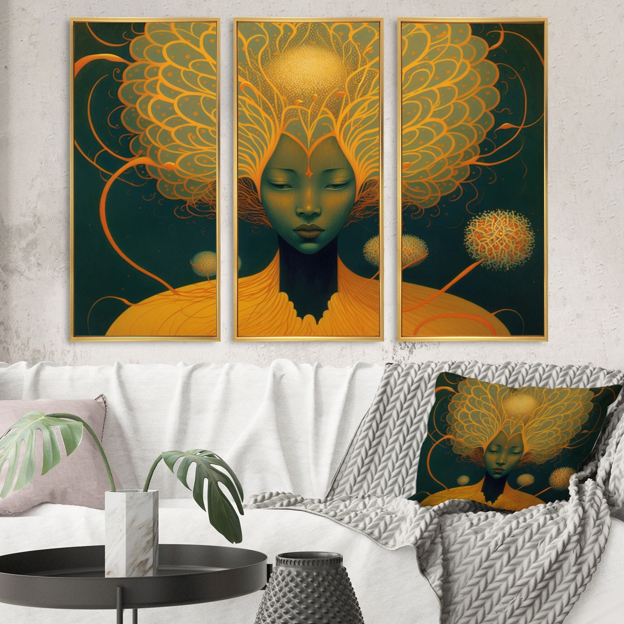 Designart "Japanese Mystery Goddess I" Asian Woman Framed Canvas Wall Art Print - 3 Panels