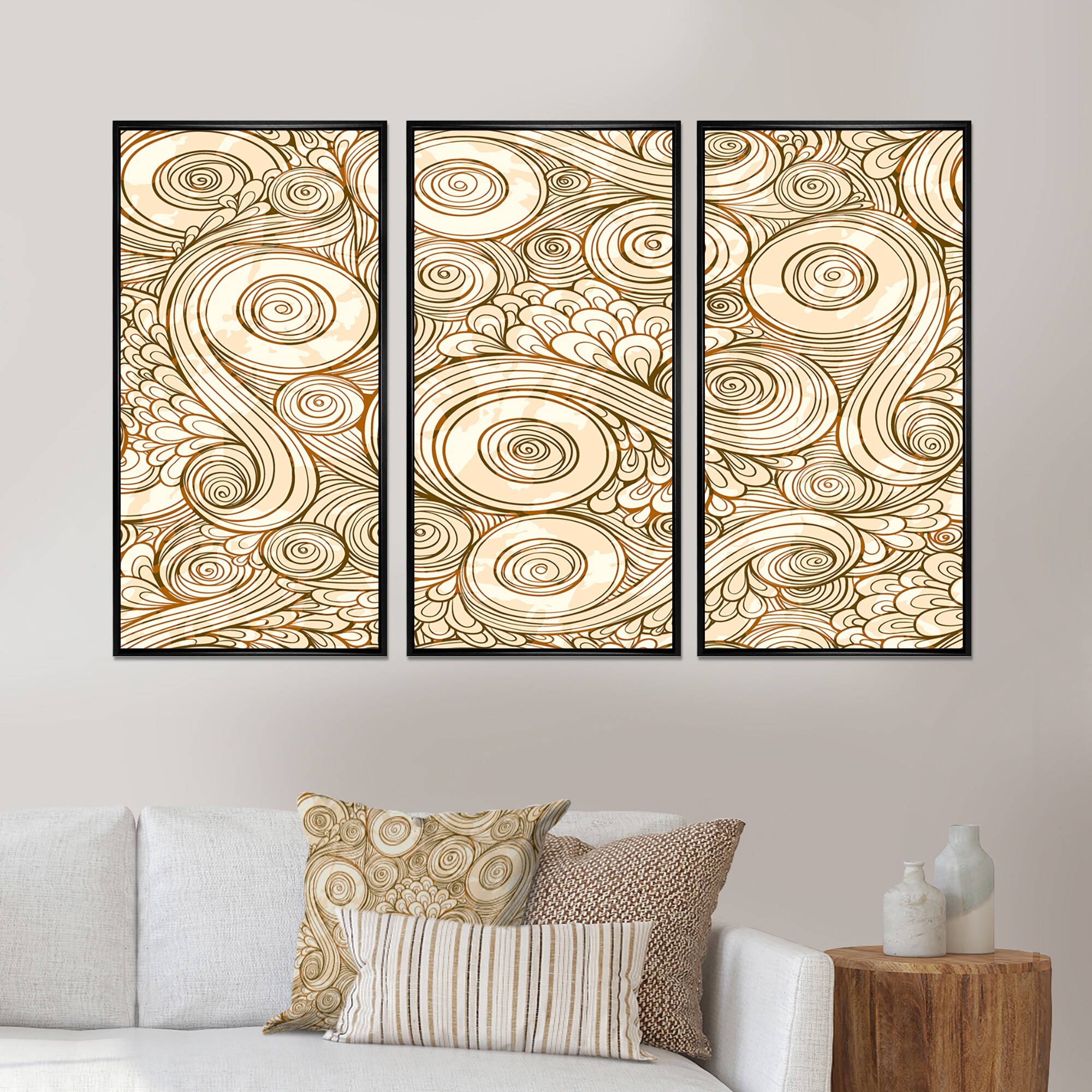 Designart "Retro Asian Sepia Waves" Bohemian Framed Art Prints Set of 3 - 4 Colors of Frames