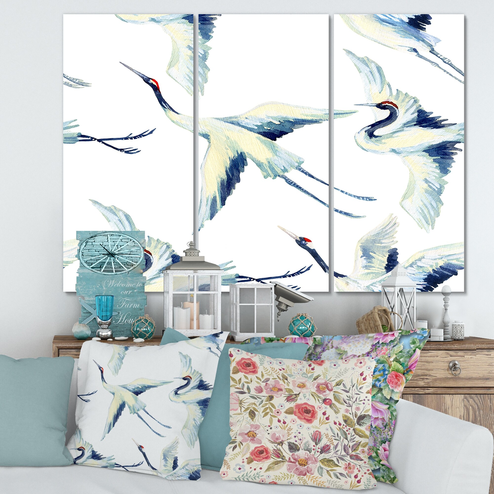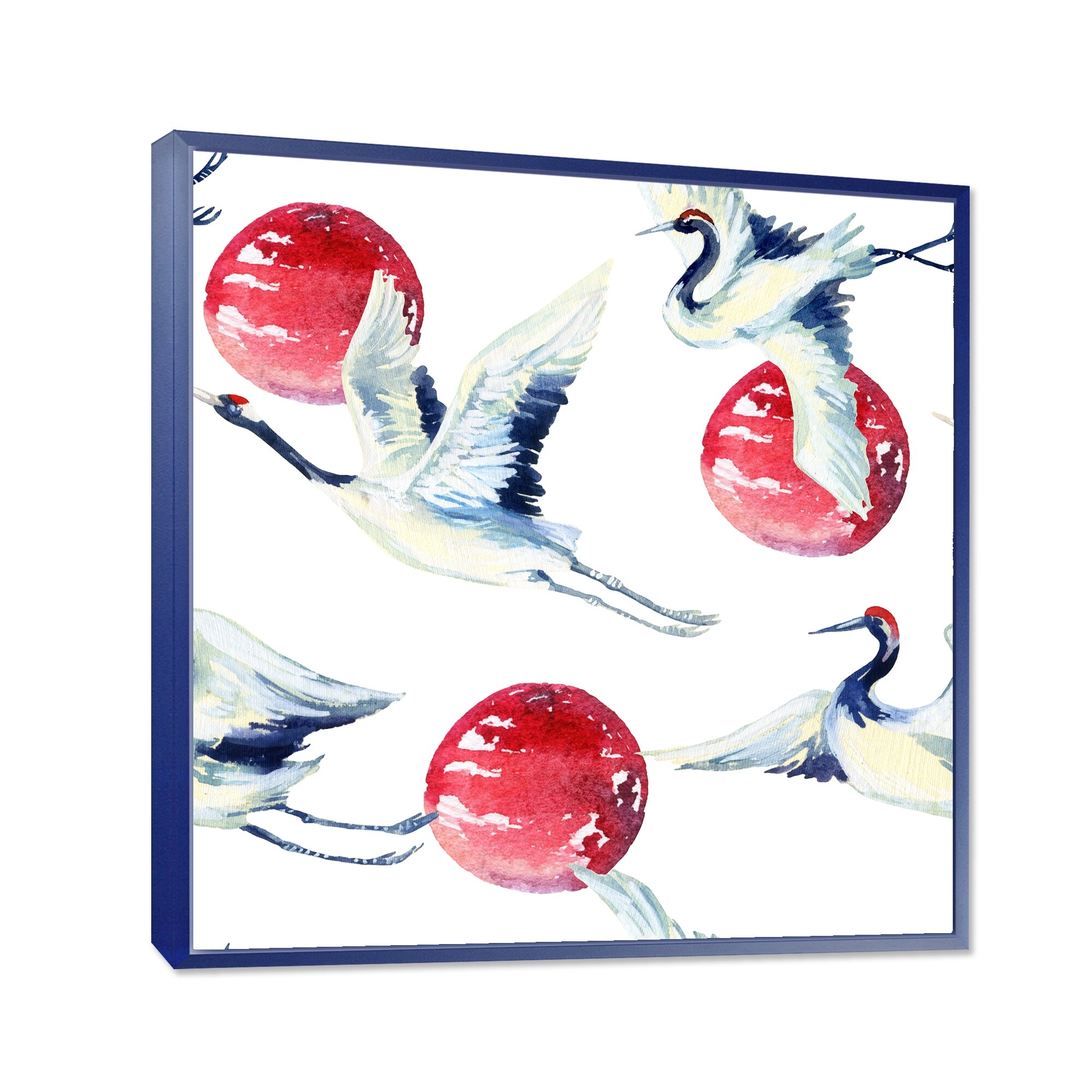 Designart "Asian Crane Bird" Traditional Canvas Wall Art Print