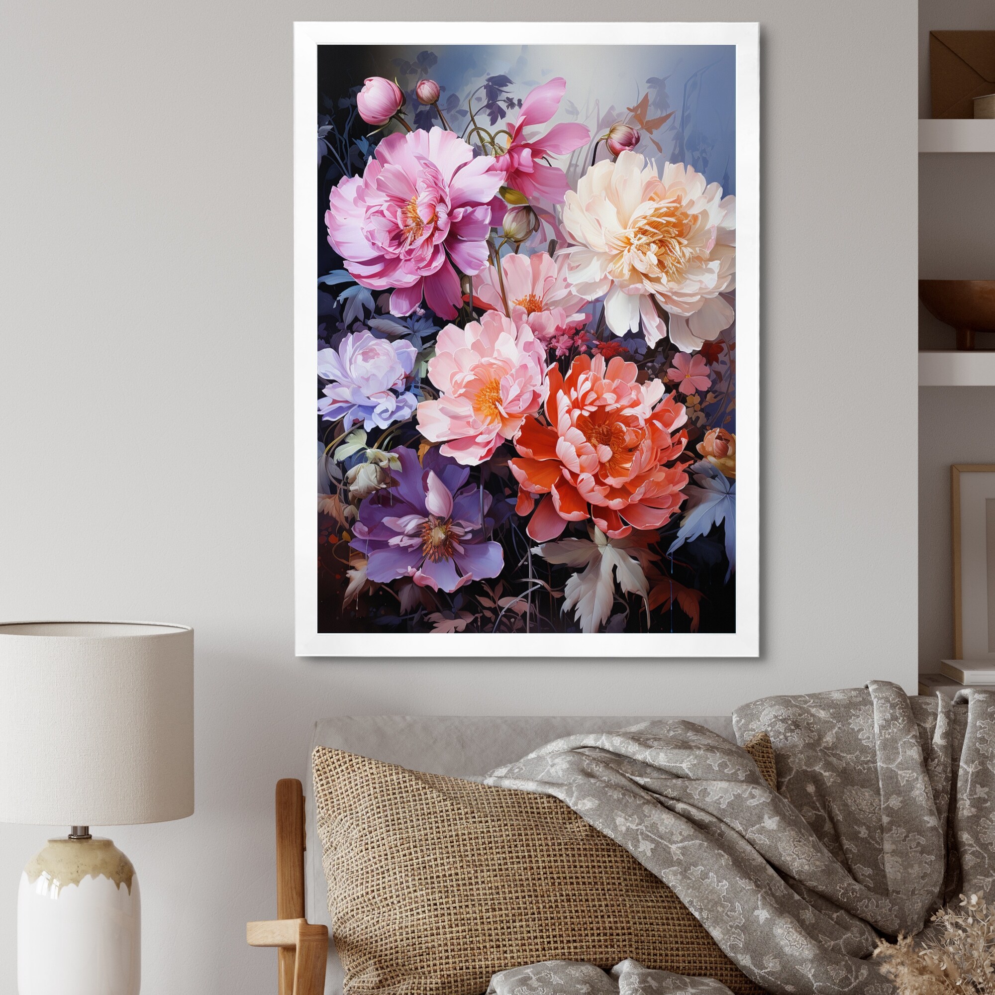 Designart "Asian Art Peonies in Coral" Asian Art Framed Wall Art Living Room