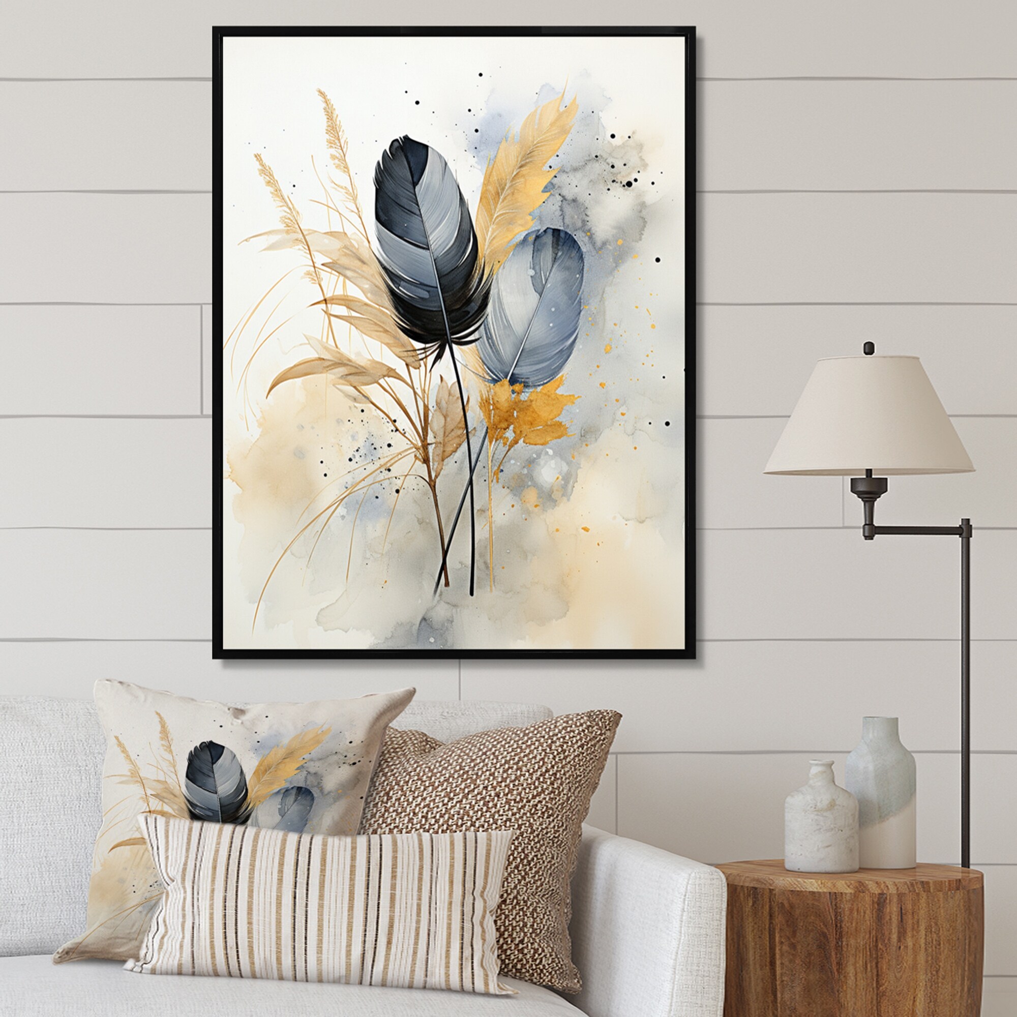 Designart "Asian Art Feathers Sumi II" Asian Art Framed Canvas Art Print