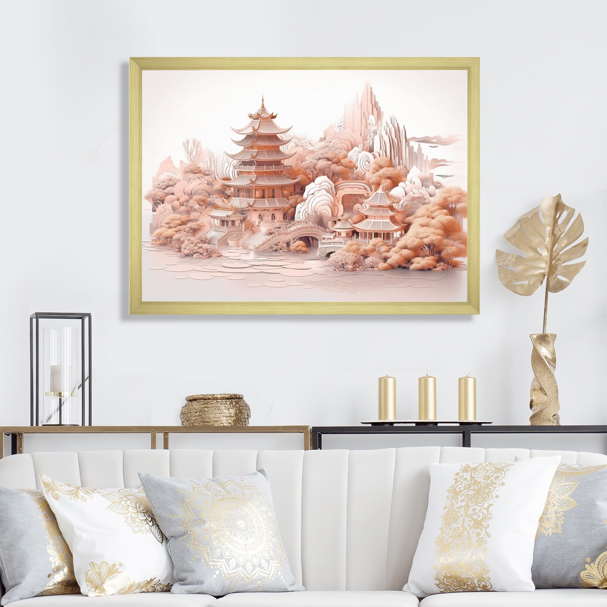 Designart "Asian Mountain And Lake Illustration I" Japon Landscape Framed Wall Decor
