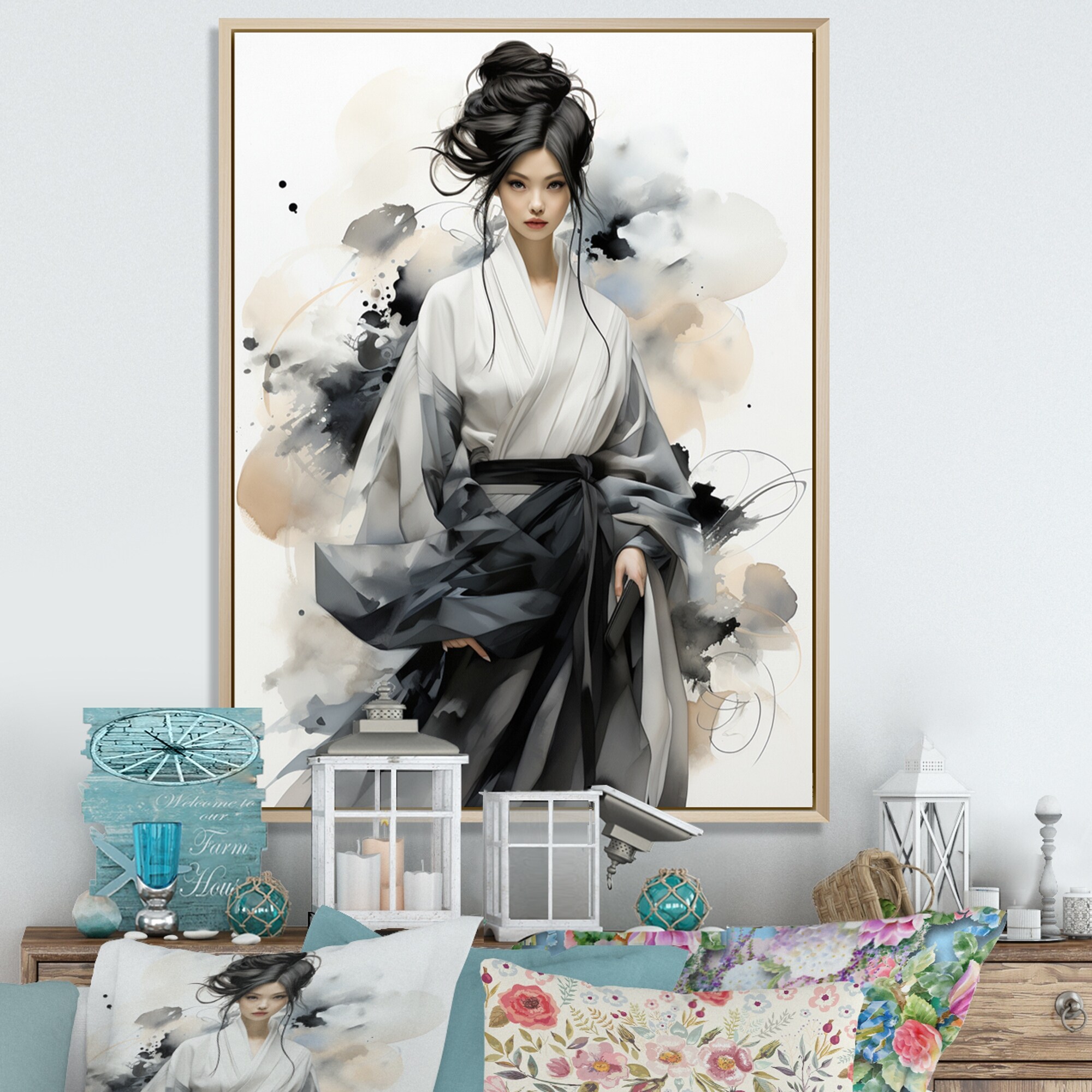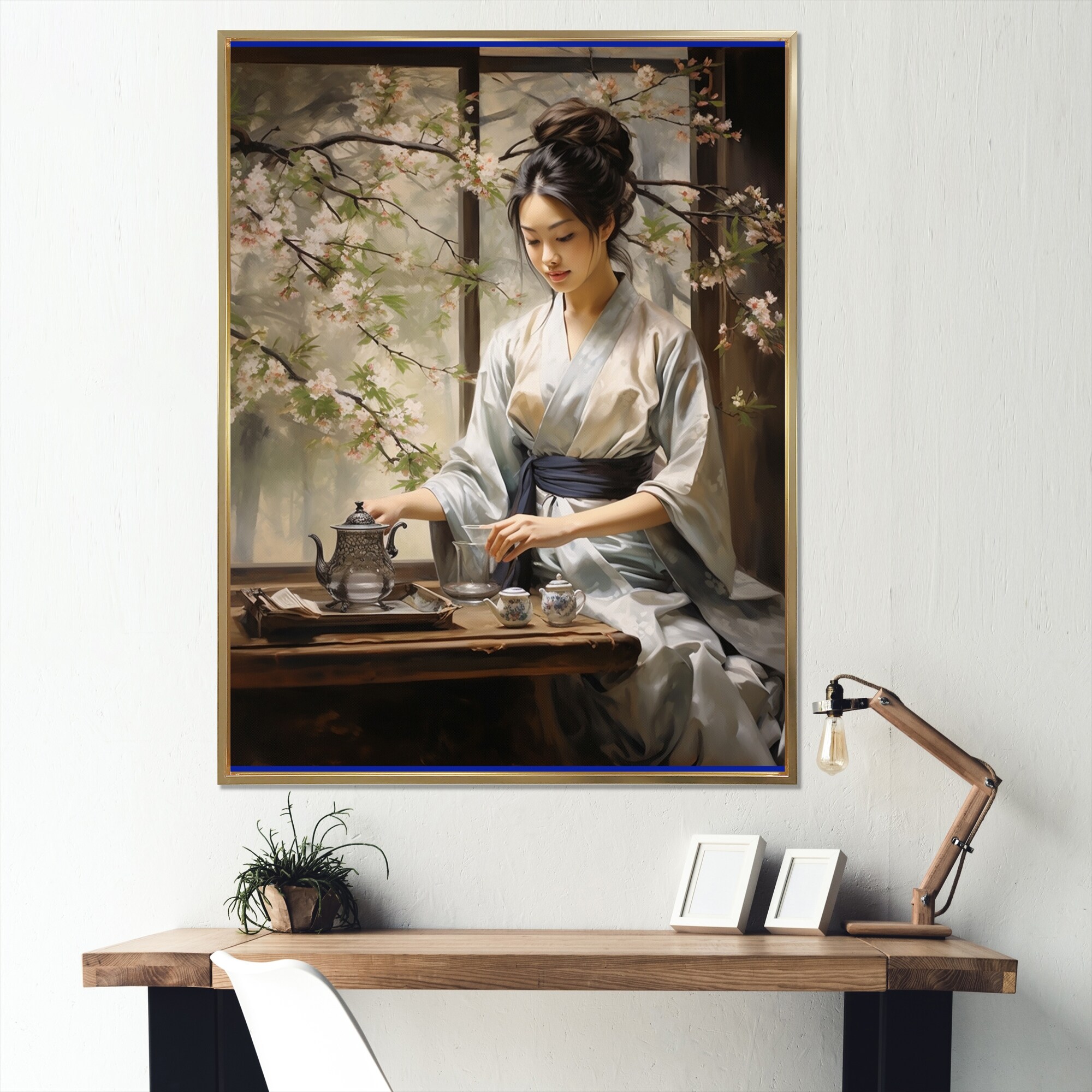 Designart "Japanese Blooming Beauty" Asian Woman Framed Canvas Wall Art
