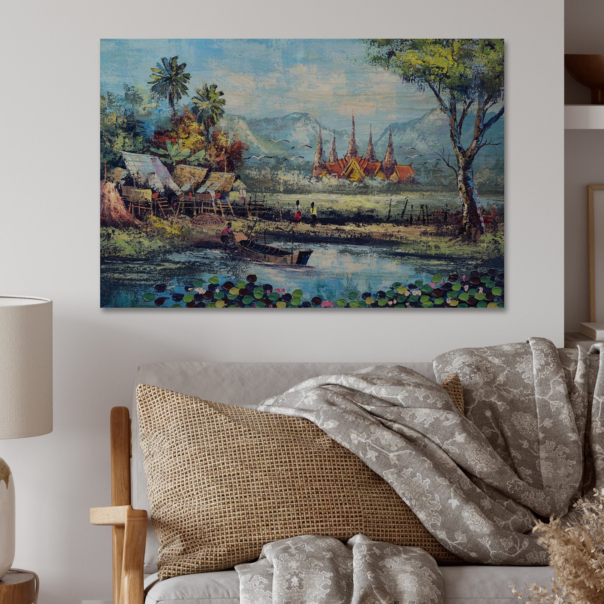Designart "Vintage Asian Waterside Life V" Vintage Framed Wall Art