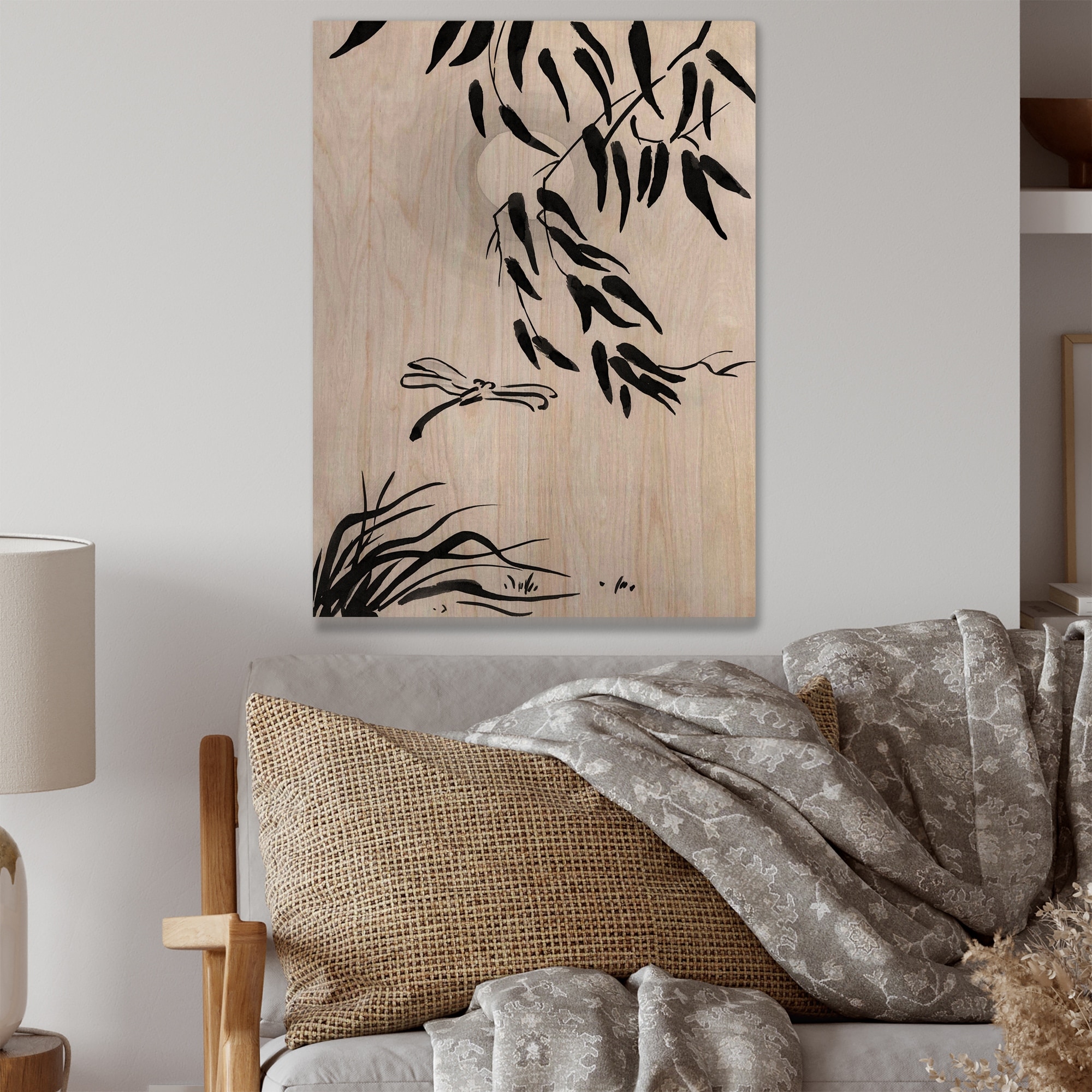 Designart 'Asian Sketch of Nature Dragonfly' Traditional Wood Wall Art Panels - Natural Pine Wood