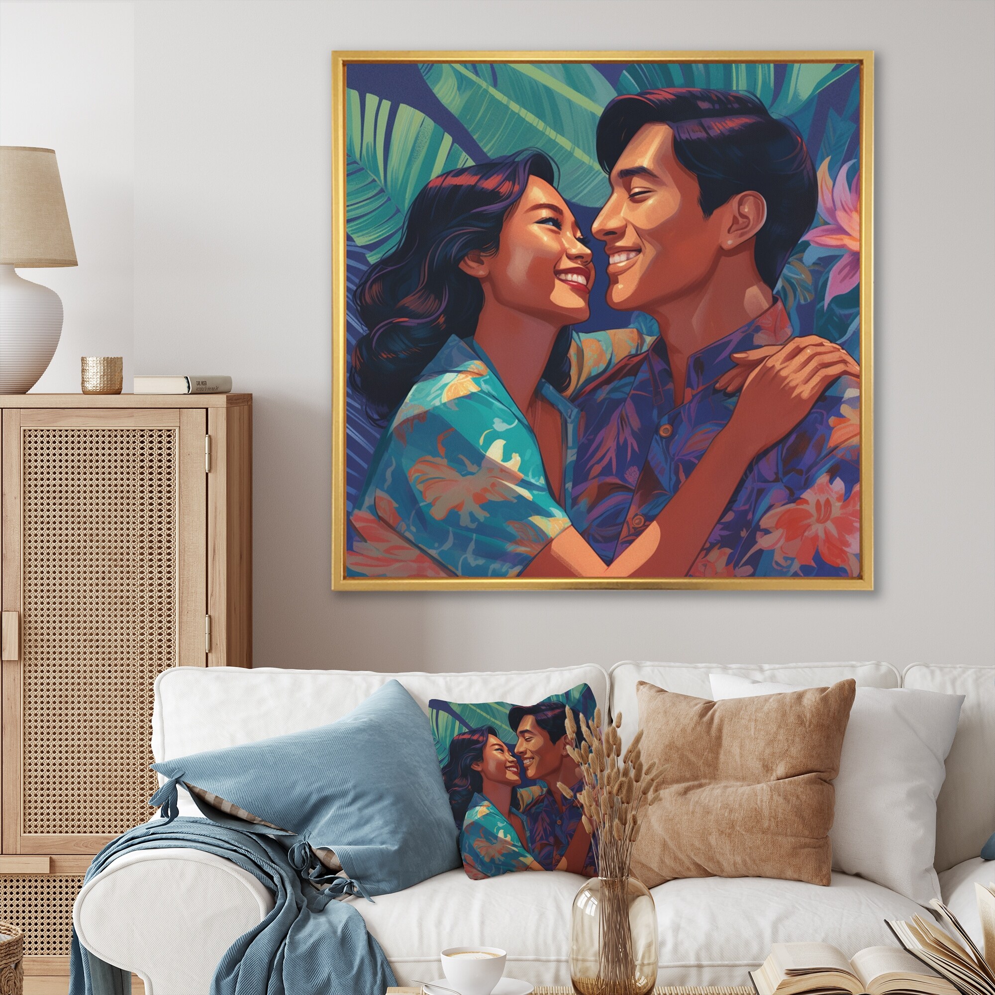Designart "Beautiful Asian Couple in Love I" Romantic Framed Canvas Prints