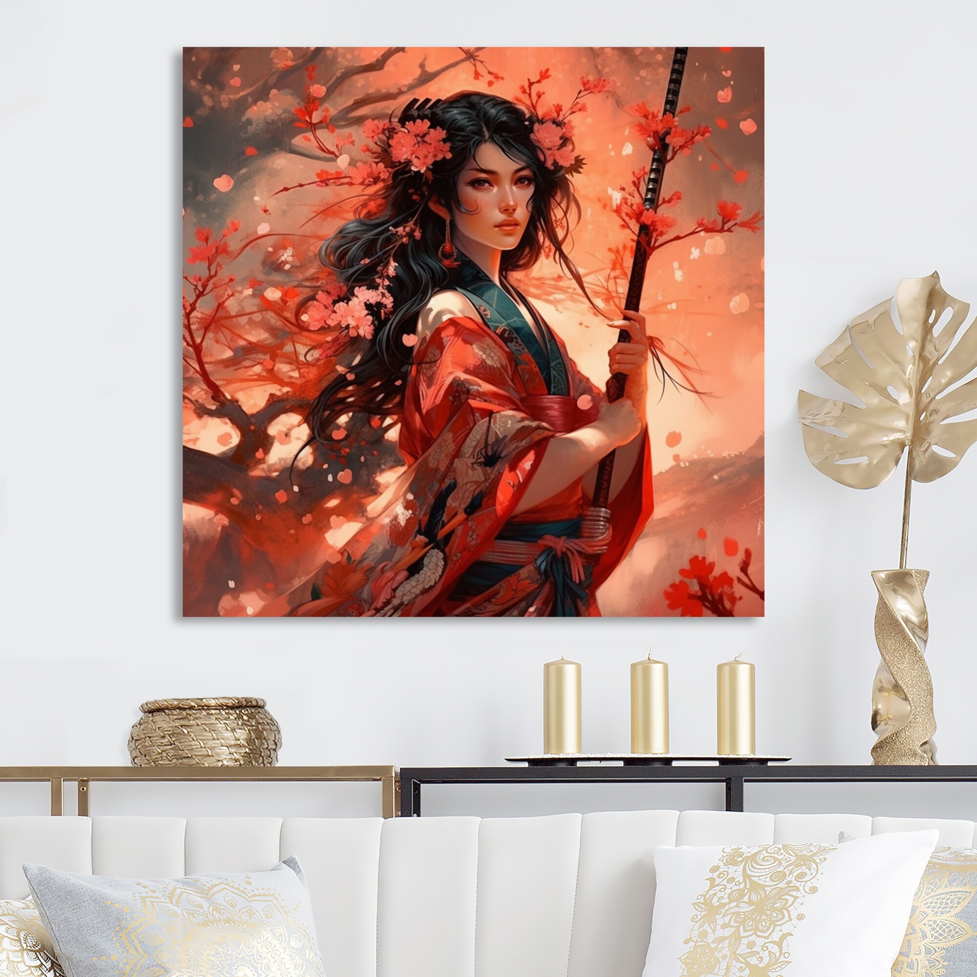 Designart "Samurai Floral Beauty I" Asian Woman Canvas Print