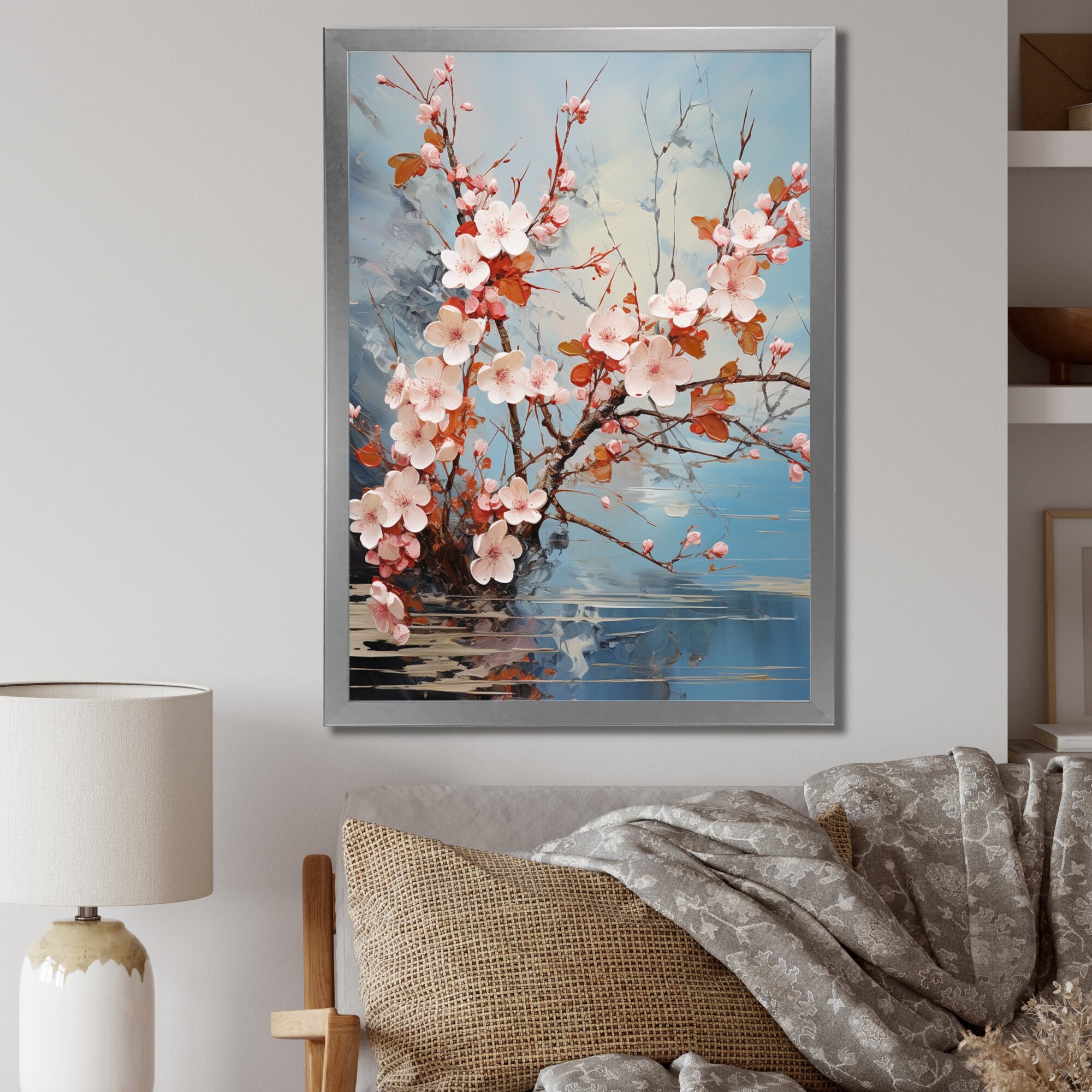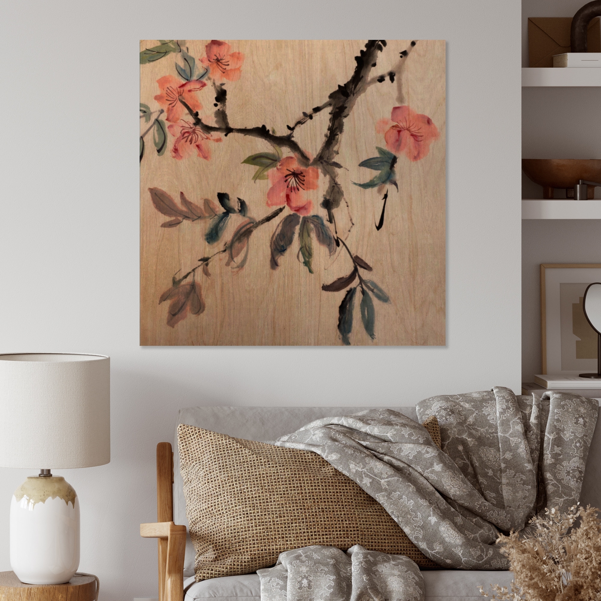 Designart 'Pastel Pink Asian Flowers' Traditional Wood Wall Art Décor - Natural Pine Wood
