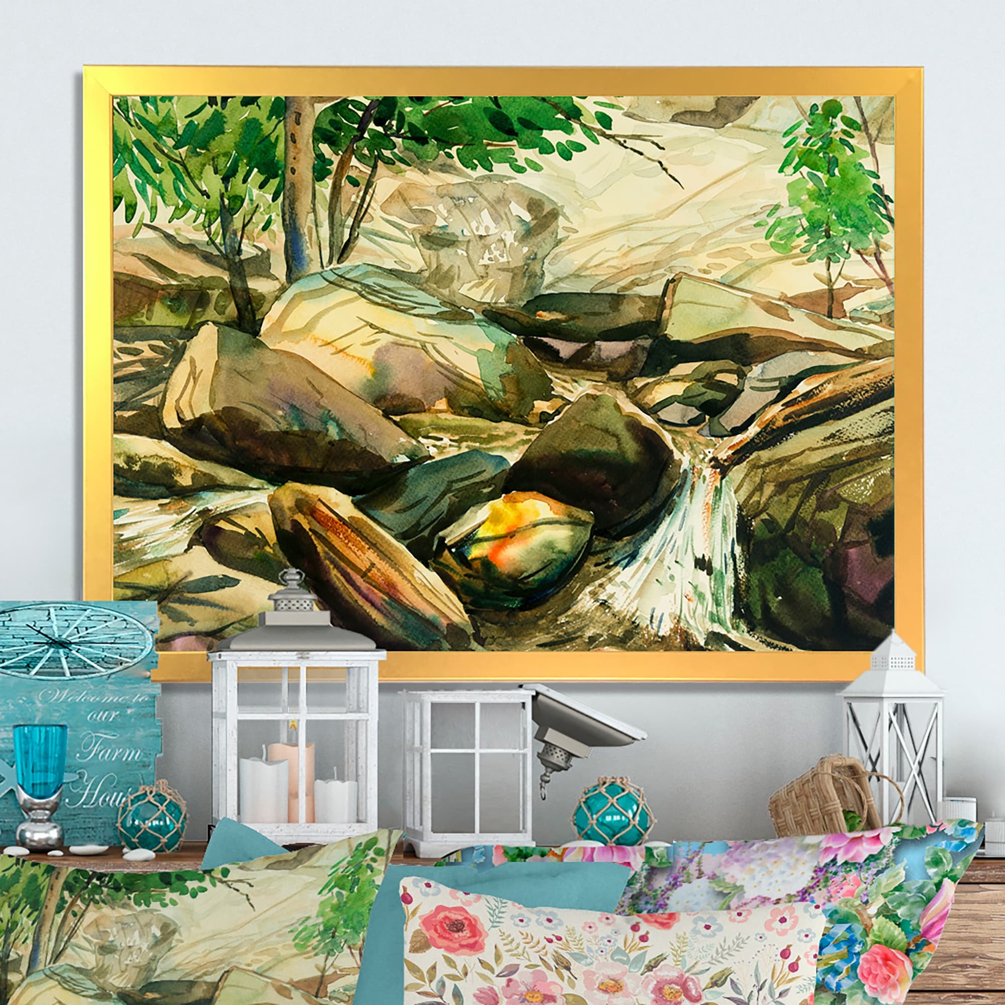 Designart "Asian Sunshine on Stone And River" Traditional Framed Art Print
