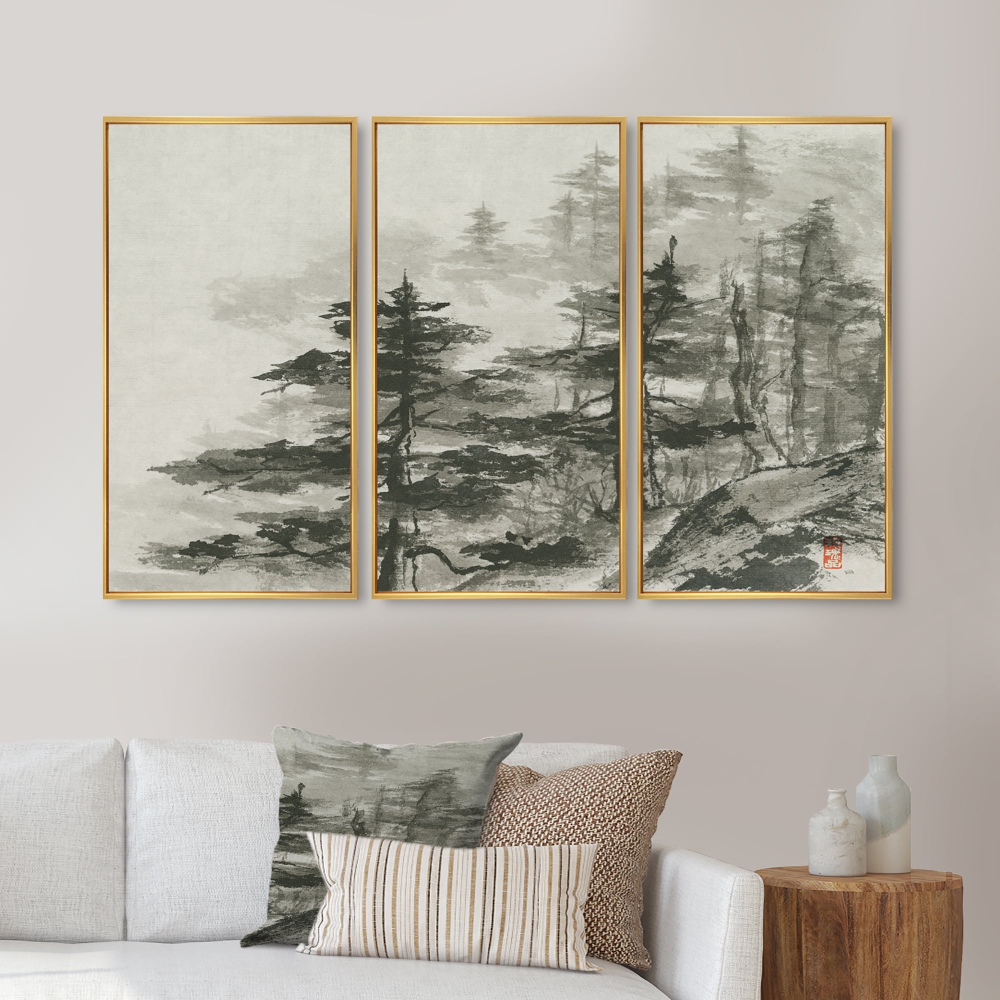 Designart "Asian Forest" Cabin & Lodge Framed Artwork Set of 3 - 4 Colors of Frames