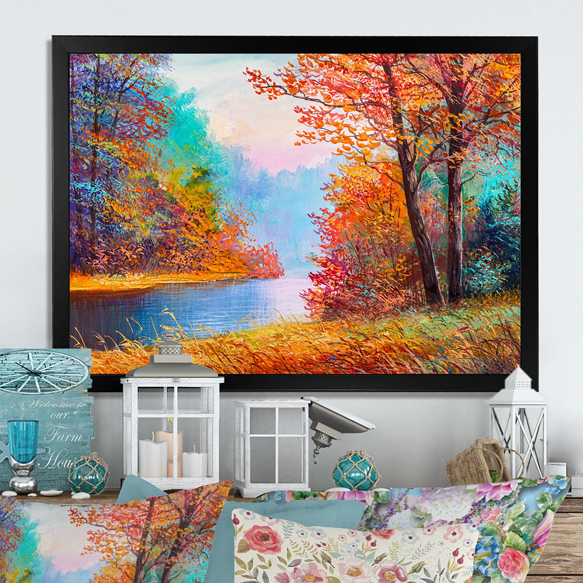Designart "Summer Scenery of a Autumn River" Traditional Framed Art Print