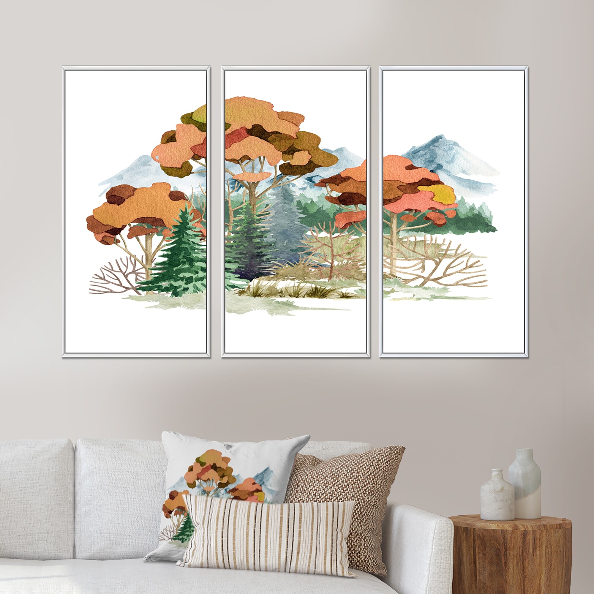 Designart "Forest Landscape Autumn Mountain Scene" Traditional Framed Artwork Set of 3 - 4 Colors of Frames